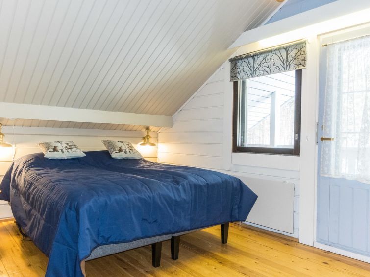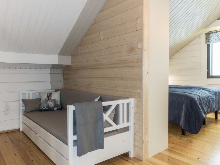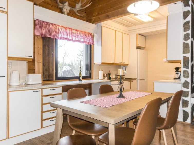 Log cabin, board lined exterior, built in 1982. The cabin has two sides, A and B, both have their own entrance. The sauna compartment is shared and is located on the ground floor in the middle of the house. Pets are allowed on the B-side for an additional fee of 25 e / pet. Pets are not allowed on the A-side.