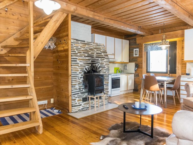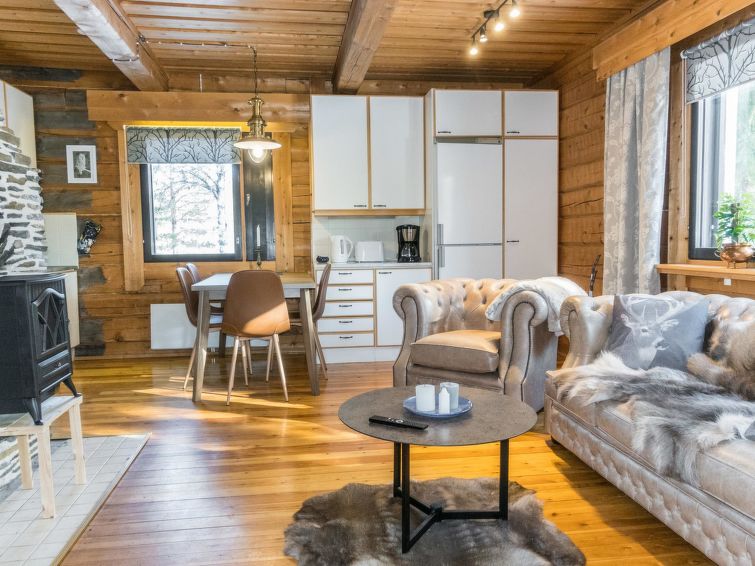 Atmospheric, two-part log cabin next to the services of Sallatunturi tourist centre. Suitable for two families. Ski trails, snowmobile trail network, ski slopes and a new national park nearby.