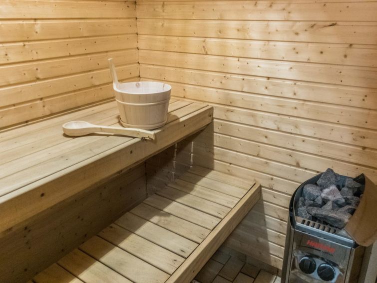 Sauna compartment is located on the ground floor, steep stairs. Sauna room, washroom and separate WC.