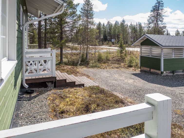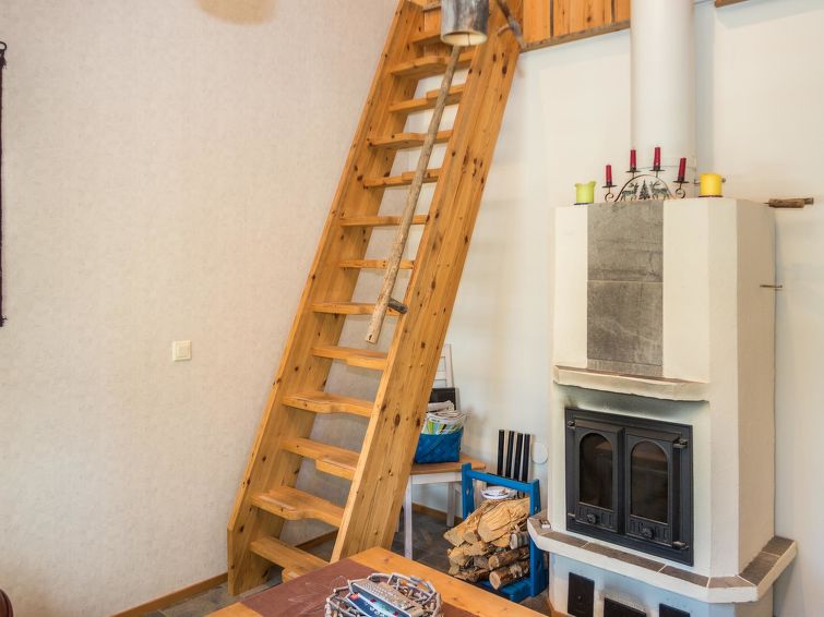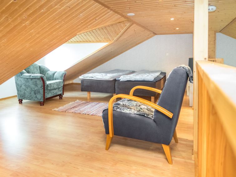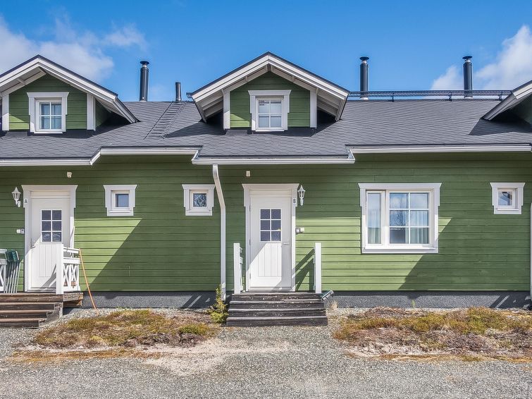 28 km to the north from Kuusamo, Vuosseli (East-Ruka) 1,2 km, Ruka village (West-Ruka, central square) 5,5 km, lake Vuosselijärvi 200 m. Apartment in a row house, three apartments in total, built in 2006. Bedroom: double bed. Loft: 2 beds + mattresses. Living room/kitchen. Electric sauna and washroom with WC.