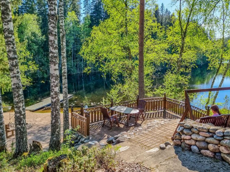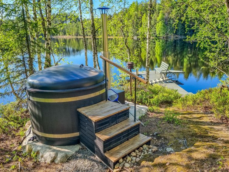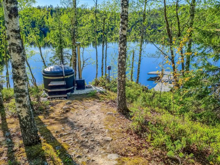 Hot tub can be rented for an additional fee from spring to autumn. It must be booked according to the duration of the accommodation reservation. If the reservation is longer than a week, the price for hot tub an additional days is 27€/day, the payment for the additional days is agreed directly with the owner. Cottage plot is nice, on slope, park-like with birch trees. Shore partly fenced suitable for children to swim in. Two bikes available. The pond has clear water and is suitable for amateur divers.