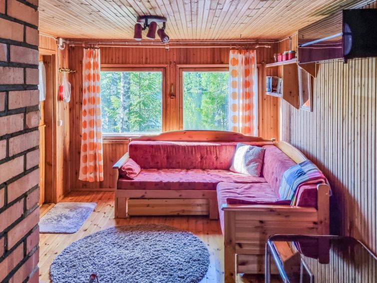 Log cottage 1985, renovated 2004, living room/kitchen with convertible sofabed for two, bedroom with double bed, washroom with WC, open porch.