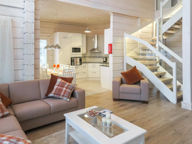 Gas grill (can be used between 1.6. - 31.10. client has to clean the grill after use), baby bed and high chair (please inform if needed). High quality holiday apartment in Myllylehto area. Final cleaning, bed linen (beds made) and firewoods are included in the price. When booking the cottage, please inform which beds will you use (so that the staff knows which beds are supposed to make ready).