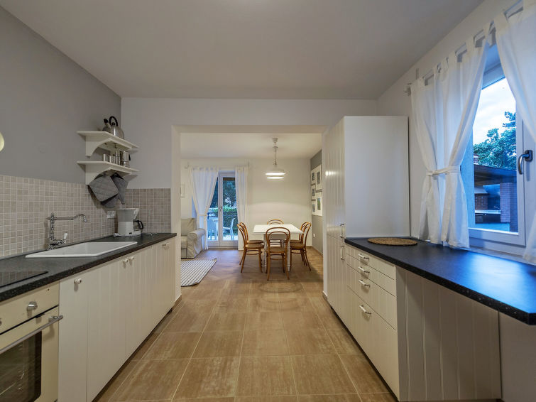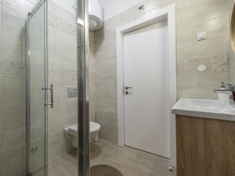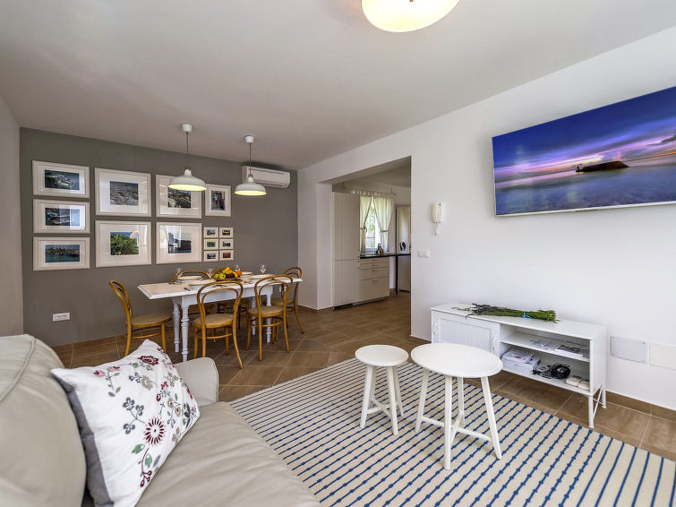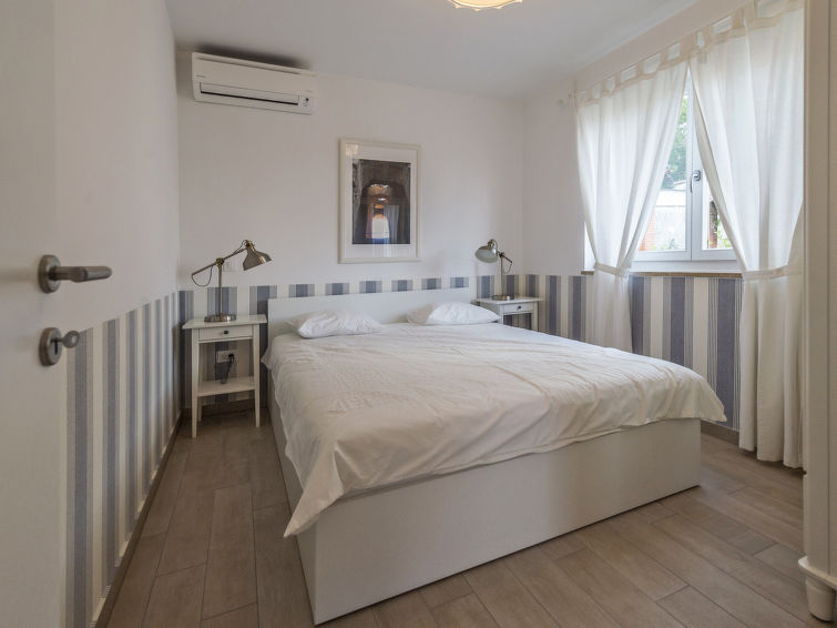 4 rom hus 120 m2 på 2 etasjer. Vakkert møbler: stue/spisestue med, 1 dobbel sovesoffa (160 cm, lengde 200 cm), satelit-TV (flatskjerms TV), air-conditioning. Utgang til terrassen, til badebassenget. 1 rom med, 1 dobbeltseng (160 cm, lengde 200 cm), air-conditioning. Åpent kjøkken (ovn, oppvaskmaskin, 4 keramiske kokeplater, frys, elektrisk kaffemaskin). Dusj/WC. øverste etasje: 1 rom med, 1 dobbeltseng (160 cm, lengde 200 cm), air-conditioning. 1 rom med, 1 dobbeltseng (160 cm, lengde 200 cm), air-conditioning. Utgang til terrassen. Dusj/WC. Varmluftsoppvarming. Terrasse 15 m2, dekt, terrasse 20 m2. Terrassemøbler, liggestoler. Utsikt av svømmebassenget og hagen. Fasiliteter: barneseng (ekstra). Internett (trådløs LAN [WLAN], gratis). 1 lite kjæledyr / liten hund tillatt.