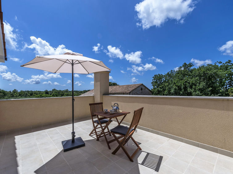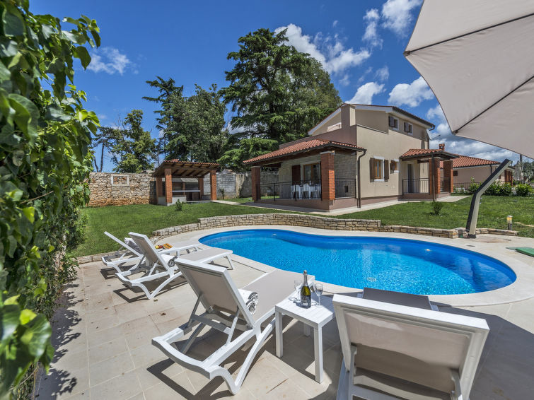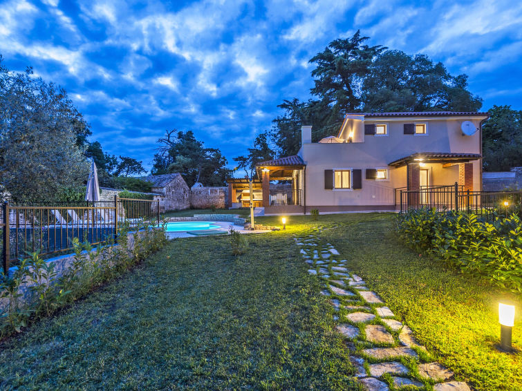 Višnjan 10 km fra Poreč: Enmannsbolig "Orhidea", med 2 etasjer. I det lille tettstedet Kolumbera 1 km fra sentrum av Višnjan, i en solrikt posisjon, 8 km fra sjøen. Privat: tomt 800 m2 (inngjerdet), hage med plen, svømmebasseng (28 m2, dybde 140 cm, 22.04.-30.09.). Formet basseng. Utendørs dusj, terrasse (15 m2), hagemøbler, grill. I hbrukt: internetilkobbling, vaskemaskin. Parkering ved hbrukt på tomten. Butikk 1 km, restaurant 500 m, småstenstrand 8 km, strand ved klipper 8 km. Tennis 13 km, rideskole 10 km, turstier fra hbrukt 100 m, sykkelvei 150 m.