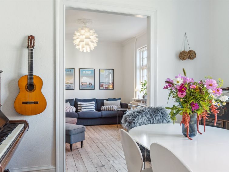 "Ortrud" - 200m from the sea in NW Jutland", 3 rom hus 128 m2. Passer for 8 voksne + 1 barn. Stue med, TV og radio. 1 rom med, 1 dobbeltseng. Kjøkken (stekeovn, oppvaskmaskin, 4 keramiske kokeplater, mikrobølgeovn, frys). 2 dusjer/WC. øverste etasje: 1 rom med 4 senger. 1 rom med 2 senger. Fasiliteter: høy barnestol barneseng (ekstra). Internett (trådløs LAN [WLAN]). Vennligst merk: røykfri bolig.