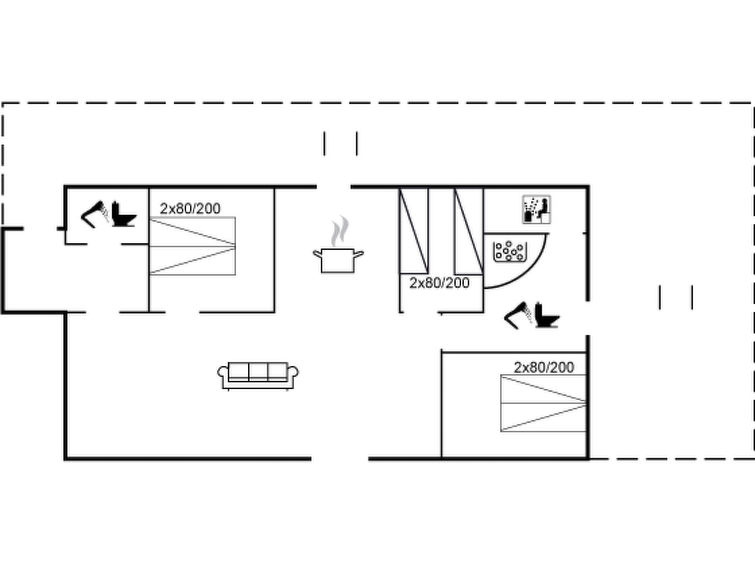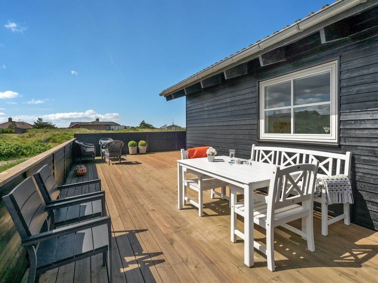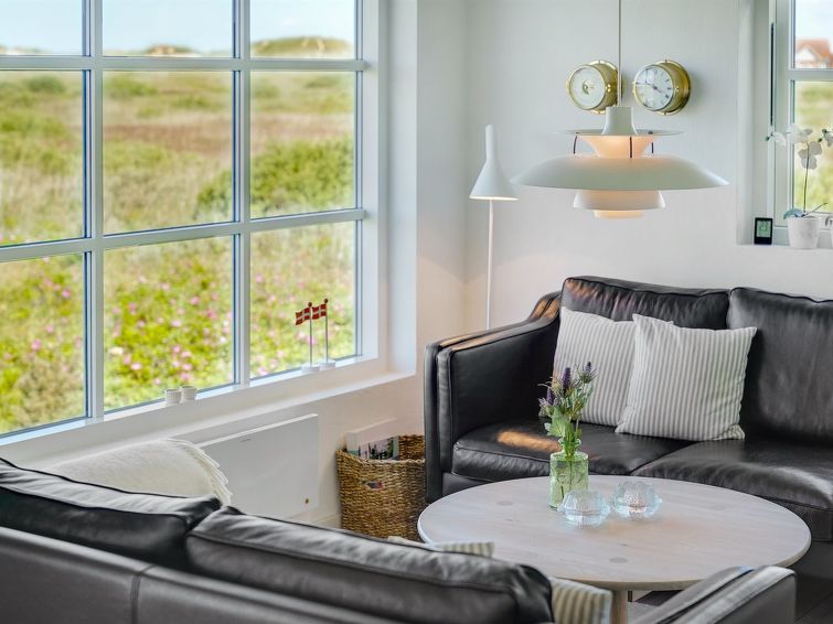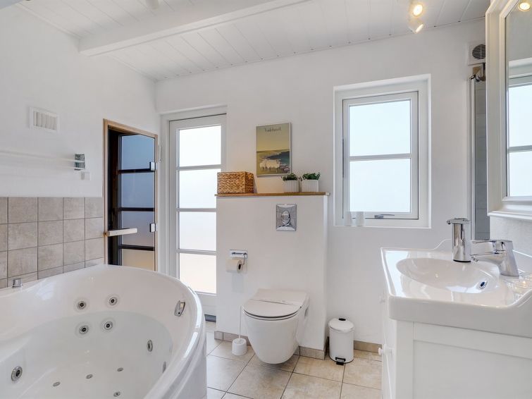 "Ortwin" - 450m from the sea in Western Jutland", 3 rom hus 82 m2. Passer for 6 voksne. Stue med, radio og stereoanlegg. 1 rom med, 1 dobbeltseng. 1 rom med, 1 dobbeltseng. 1 rom med 2 senger. Kjøkken (stekeovn, oppvaskmaskin, 4 induksjonskomfyr, mikrobølgeovn, frys). 2 dusjer/WC, boblebad. Fasiliteter: høy barnestol. Internett (trådløs LAN [WLAN]). Vennligst merk: røykfri bolig.