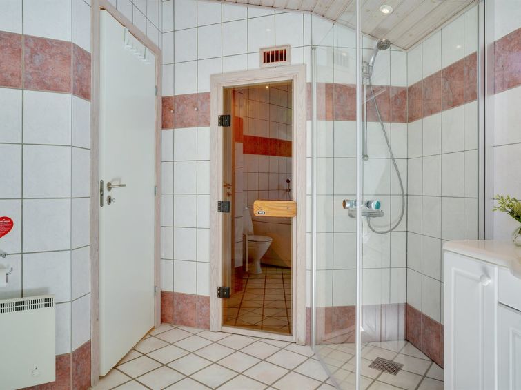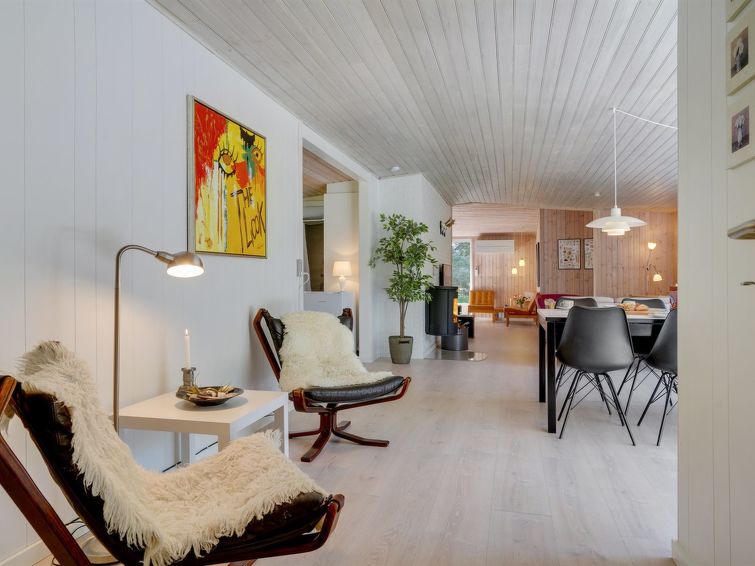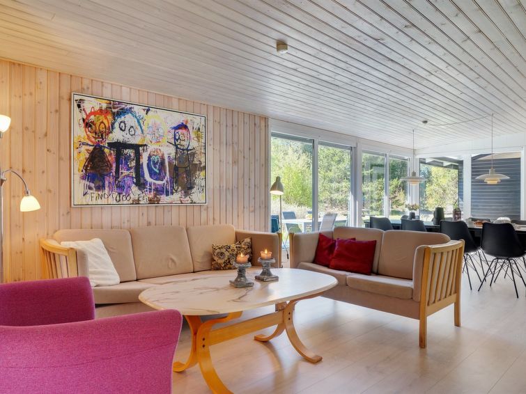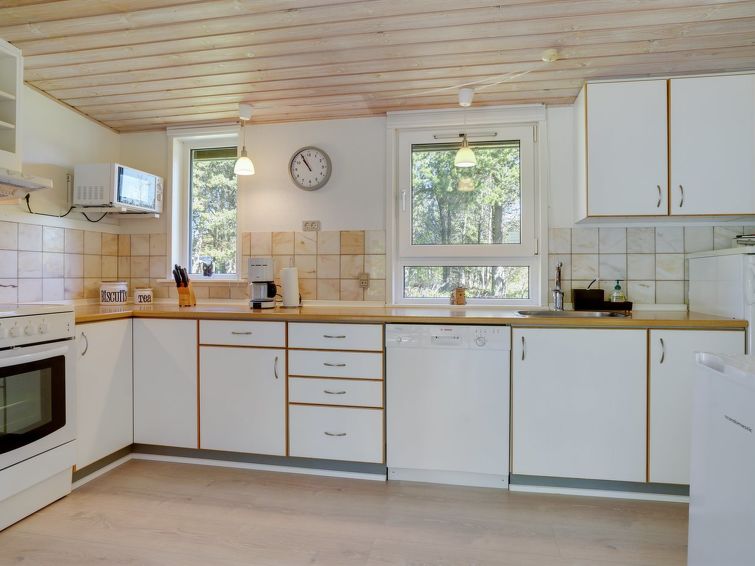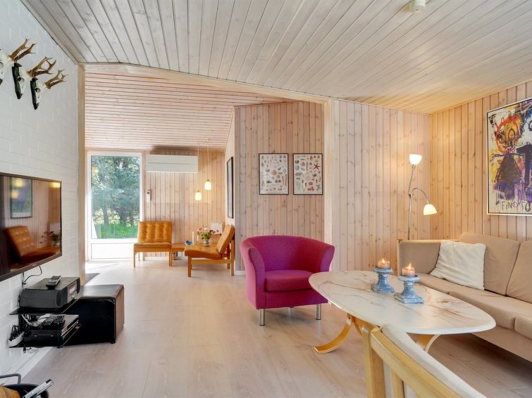 "Orvokki" - 125m from the sea in NE Jutland", 4 rom hus 110 m2. Passer for 8 voksne + 1 barn. Stue med, TV, CD-spiller, stereoanlegg og DVD. 1 rom med, 1 dobbeltseng. 1 rom med 2 senger. 1 rom med, 1 dobbeltseng. 1 rom med, 1 dobbeltseng. Kjøkken (stekeovn, oppvaskmaskin, 4 keramiske kokeplater, mikrobølgeovn, frys). Dusj/WC, boblebad. Terrasse 17 m2, dekt. Fasiliteter: høy barnestol barneseng (ekstra). Internett (trådløs LAN [WLAN]). Vennligst merk: røykfri bolig.