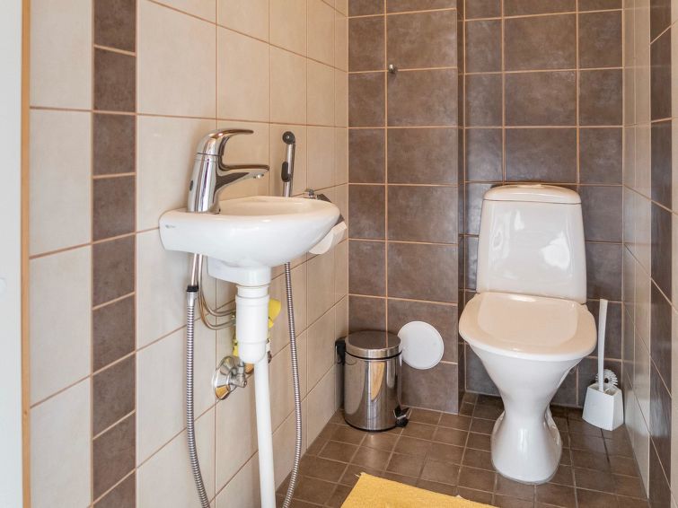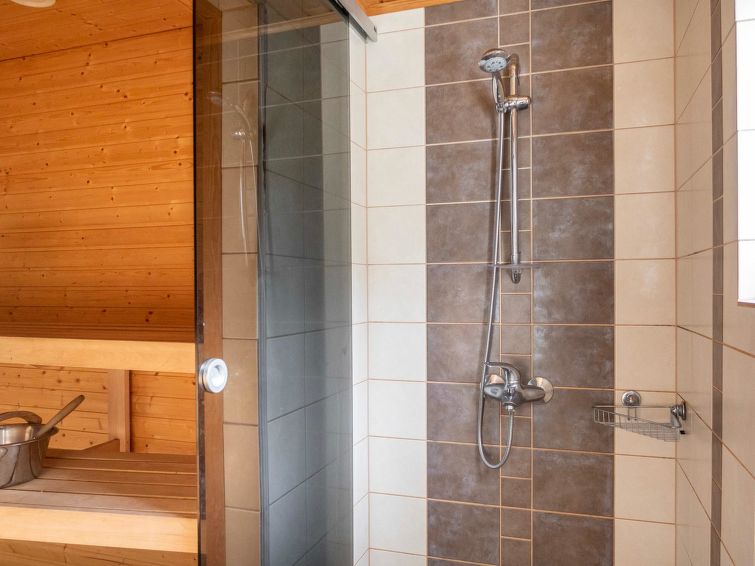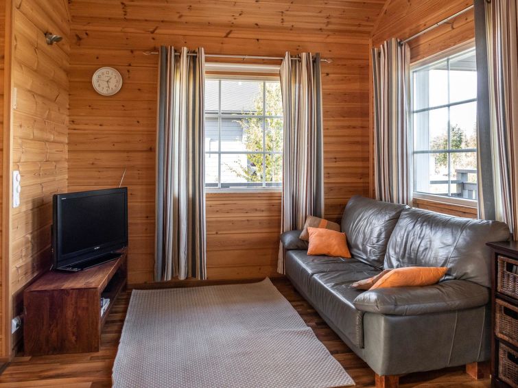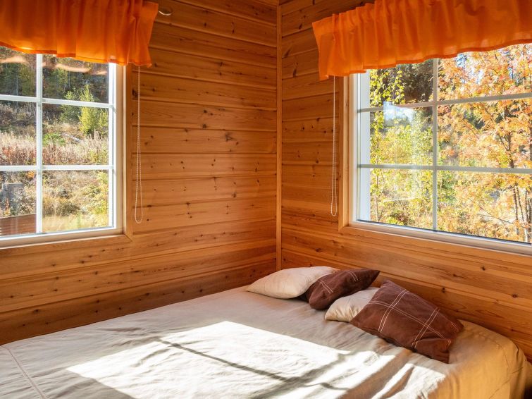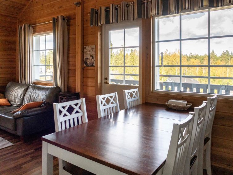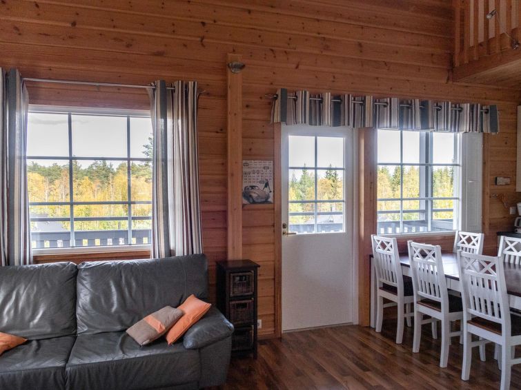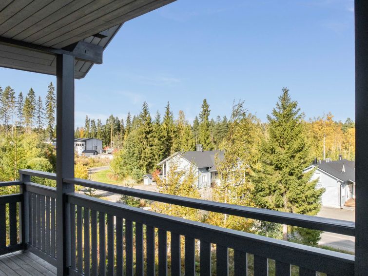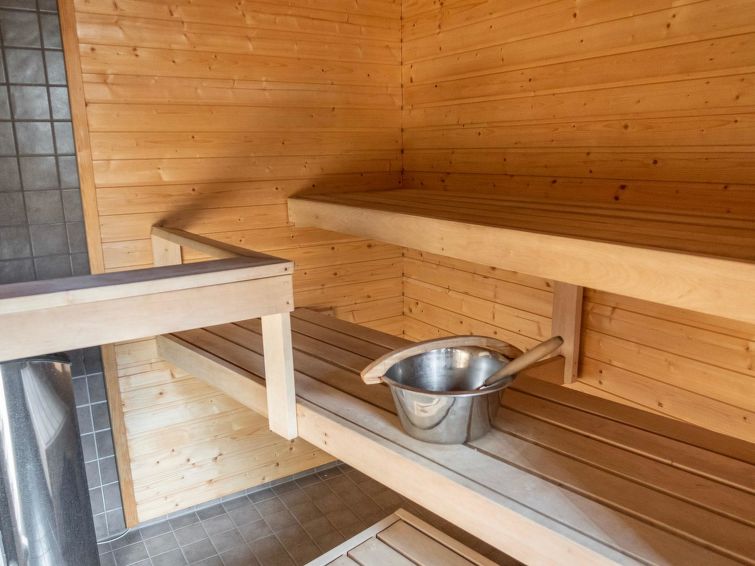 This apartment in semi-detached house, located in Vuokatti ski centre, was completed in 2008. Floor area 67,5 m² (loft 27 m²). Three floors in this house, apartment in floors 2 and 3, steps to apartment. Both floors with terrace. In the first floor a warm storage. On the ground floor in apartment there is combined living room & kitchen, a bedroom with twin bed, sauna (electric heating), washroom and toilet. Upstairs in the loft there is one bedroom with three separated beds and a child´s bed. Kajaani 35 km, Sotkamo 7 km, Vuokatti ski slope 100 m, cross country track 100 m. Beach 2 km. Cleaning and linen NOT included.