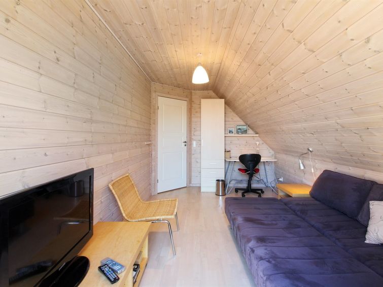 Enmannsbolig, bygget i 2005. 1.8 km fra sjøen. Privat: uberørt tomt 1'075 m2. Terrasse (40 m2), grill, lekeplass. I huset: vaskemaskin, tørketrommel. Parkering ved hbrukt. Bilporten. Daglivarehandel 500 m. Golfbane 9 km. Eieren godtar ikke noen ungdomsgrupper.