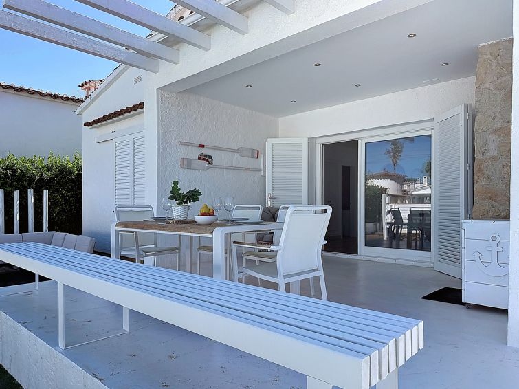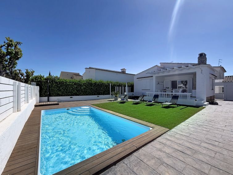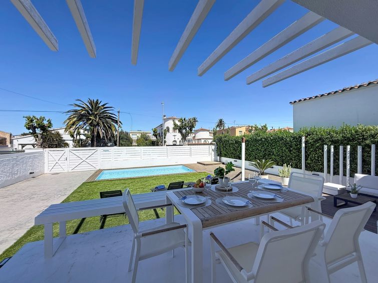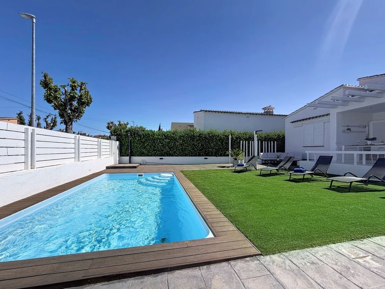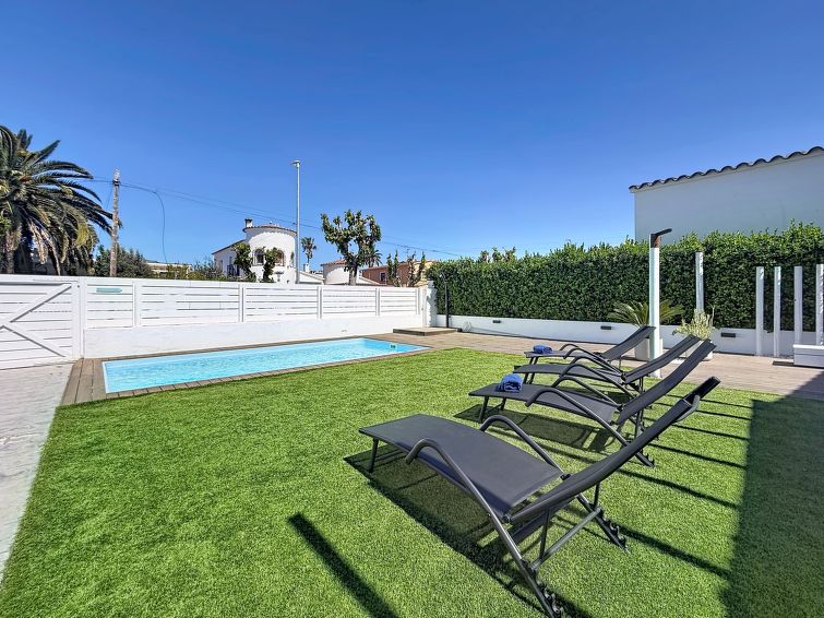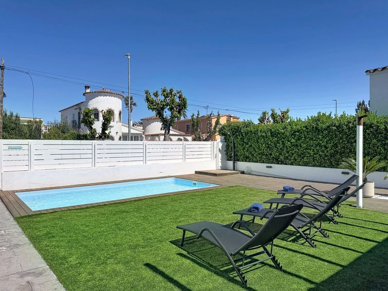 Meget moderne, fin enmannsbolig "OTLO", renovert i 2020. I området Alberes 1.2 km fra sentrum av Empuriabrava, i en roligt, solrikt posisjon boligområde, område med lite trafikk, 1.2 km fra sjøen, 350 m fra kanalen, 450 m fra elven, beliggenhet mot sør-vest. Privat: svømmebasseng kantete (8 x 4 m, dybde 100- 150 cm dyp, Sesongåpent: 01.Mai. - 30.Okt.). Utendørs dusj, sitteplass, pergola, hagemøbler, parkering ved hbrukt. Butikk, daglivarehandel 300 m, supermarked 400 m, restaurant 260 m, bar 300 m, bakeri 230 m, bussholdeplass 2.8 km, sandstrand "Empuriabrava" 1.2 km. Sporthavn 1.8 km, golfbane(18 hull) 15 km, surfeskole 2 km, seileskole 2 km, tennis 2 km, minigolf 1.5 km, rideskole 3 km, turstier fra hbrukt, sykkelvei 400 m. Attraksjoner i nærheten: Centro paracaidismo y túnel del viento 2 km, Parque Acuático Roses 10 km, Museo Dalí Figueres 15 km, Castillo de Perelada 12 km, Ruïnas de St. Martí de Empúries 21 km, Monasterio de Sant Pere de Rodes 23 km. Eieren godtar ikke noen ungdomsgrupper.
