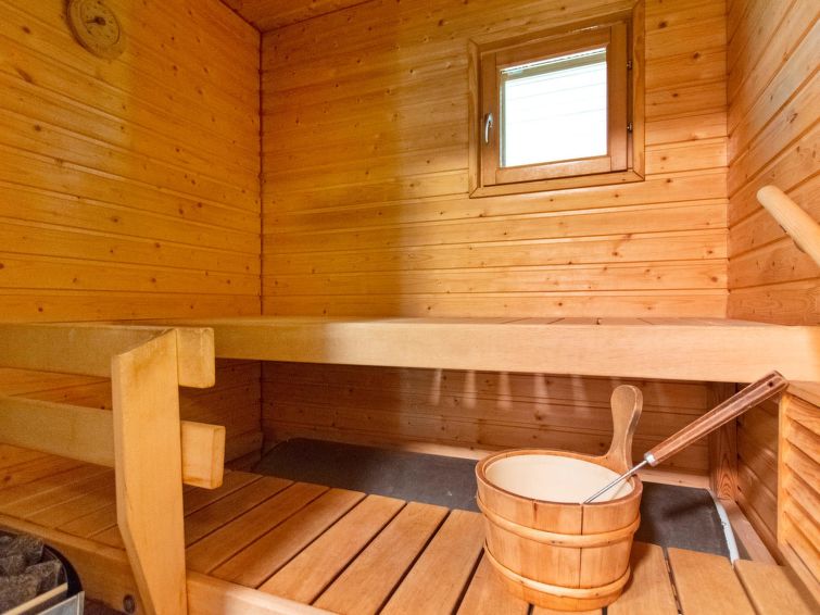 This apartment in semi-detached log house located in Vuokatti Jäätiönrinne area was completed in 2003. Floor area 60 m², combined living room & kitchen with sofa bed for 1-2 persons, two bedrooms, one with twin beds and one with bunk bed for 2 prsons + 80 cm wide bed for one person. Sauna (electric heating), washroom and toilet.