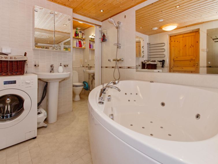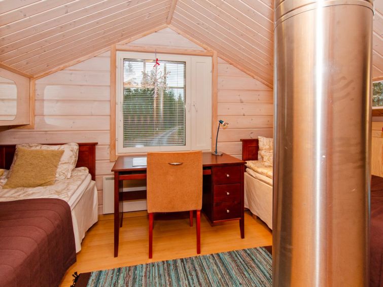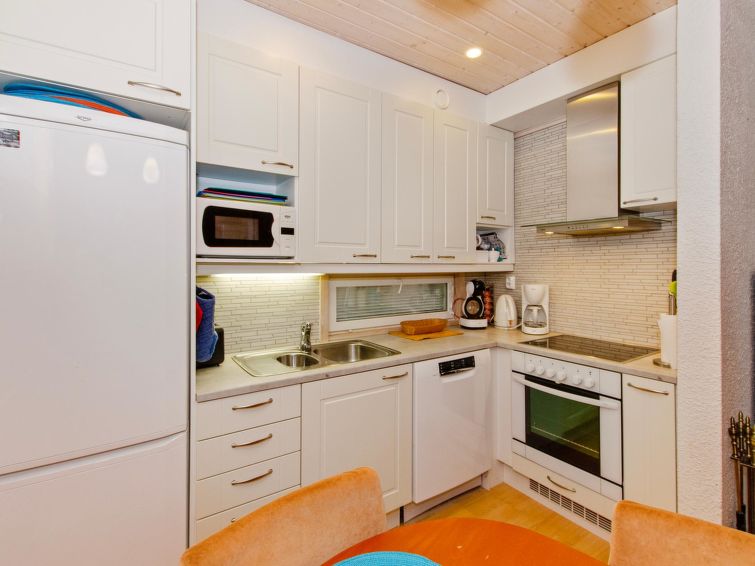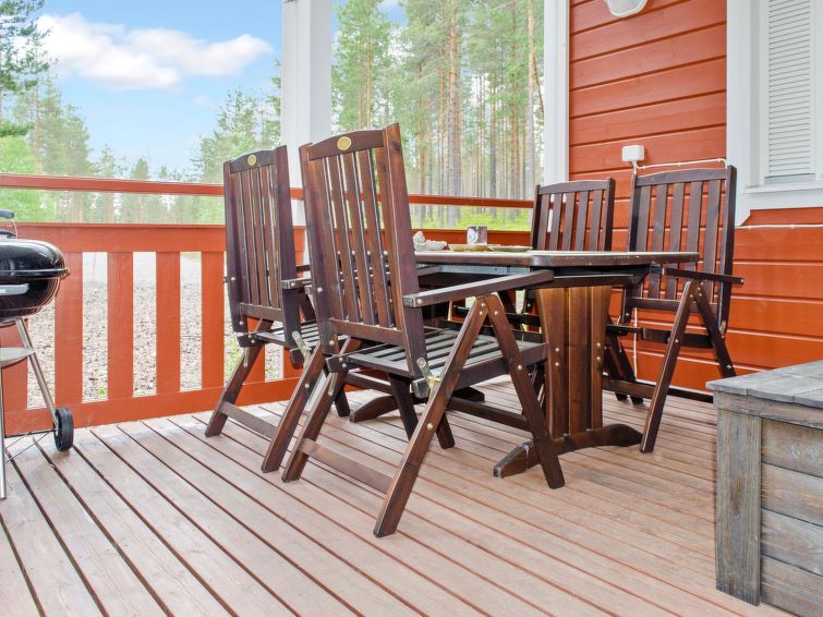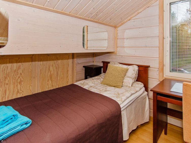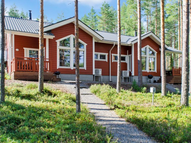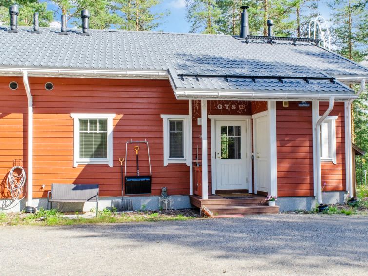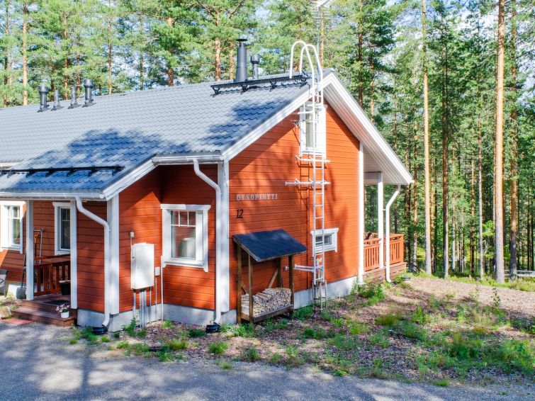 77 km north of Joensuu, Small lake Koirilampi. Wood semi-detached house 2008, kitchen-living room with convertibal sofa, 2 bed rooms with with double bed in each, upstairs bed room with 2 beds, washroom, sauna (elec. stove), terrace. Upstairs also toilet with a shower. Modern and high standard semidetached house apartment by the small lake Koirilampi in Loma-Koli cottage area. Hiking trails near by. There is a hydro massage bath in the washing room. There are two tv-sets, also DVD and VCR are available. Internet connection (ADSL and Wi-Fi), satellite antenna (over 460 channels). No other cottages beside the house. The cottage is suitable for downhill and cross-country skiers; Ukko-Koli slopes 8 km.