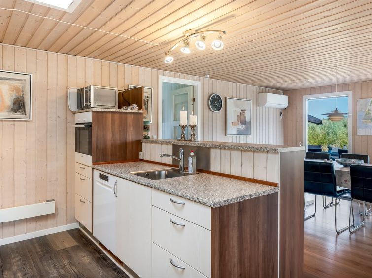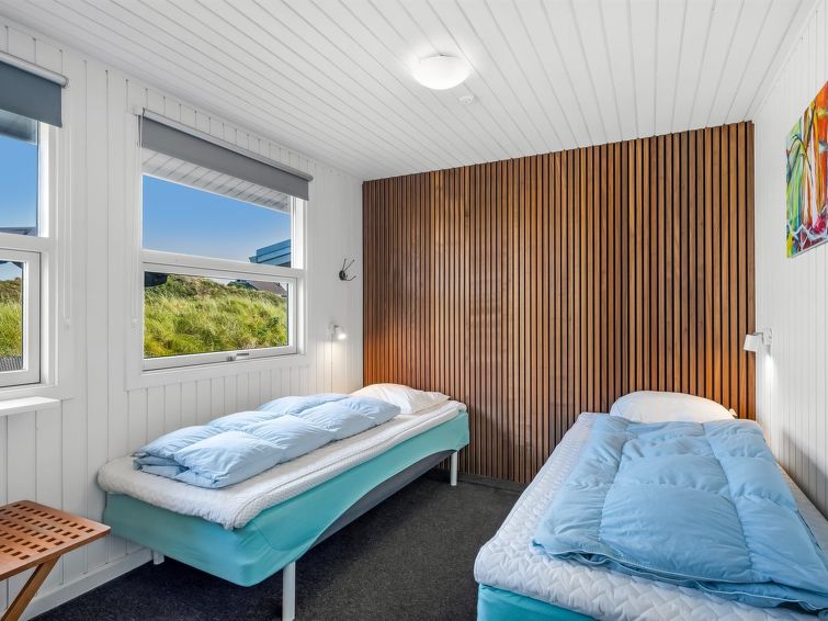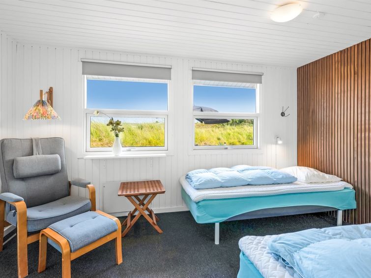 "Ottar" - 400m from the sea in Western Jutland", 4 rom hus 142 m2. Passer for 8 voksne. Stue med, TV, CD-spiller, stereoanlegg og DVD. 1 rom med, 1 dobbeltseng. 1 rom med, 1 dobbeltseng. 1 rom med, 1 dobbeltseng. 1 rom. Kjøkken (4 kokeplater, stekeovn, oppvaskmaskin, mikrobølgeovn, frys). 2 dusjer/WC, boblebad. øverste etasje: åpen galleri med, 2 sovemuligheter. Terrasse 9 m2, dekt. Fasiliteter: barneseng (ekstra). Internett (trådløs LAN [WLAN]).