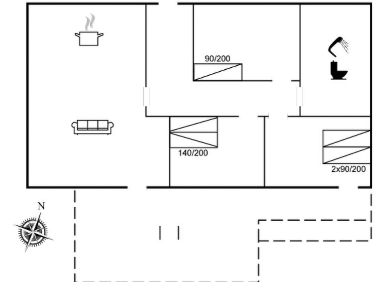 "Ottmar" - from the sea in Western Jutland", 3 rom hus 108 m2. Passer for 5 voksne. Stue med, TV. 1 rom med, 1 dobbeltseng. 1 rom med, 1 dobbeltseng. 1 rom med 1 seng. Kjøkken (stekeovn, oppvaskmaskin, 4 keramiske kokeplater, mikrobølgeovn, frys). Dusj/WC. Fasiliteter: Internett (trådløs LAN [WLAN]). Vennligst merk: røykfri bolig.