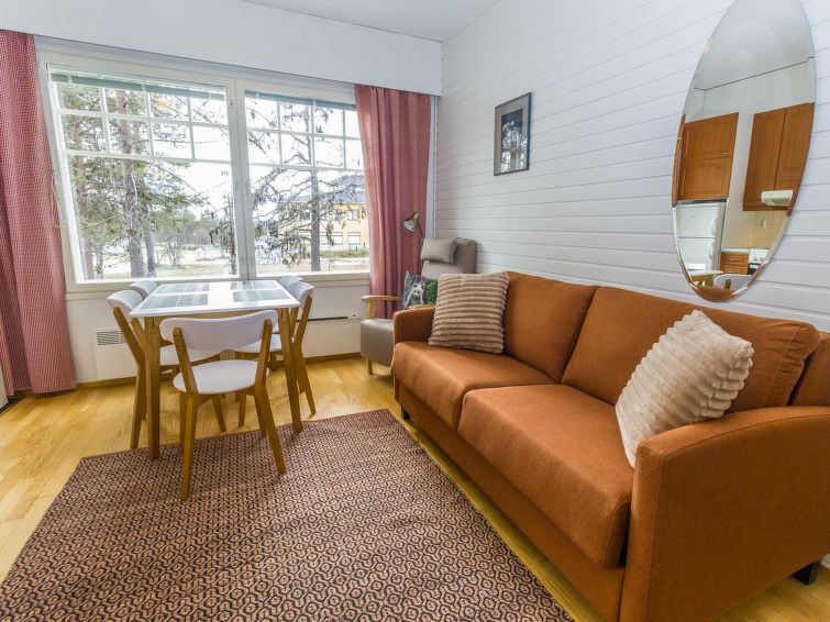 The kitchenette has everything you need for cooking and socialising. You can enjoy the warmth of a fireplace while dining, and the apartment's own sauna provides extra warmth after a day's excursions.