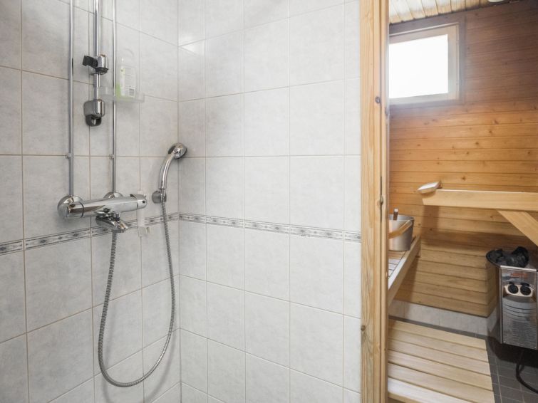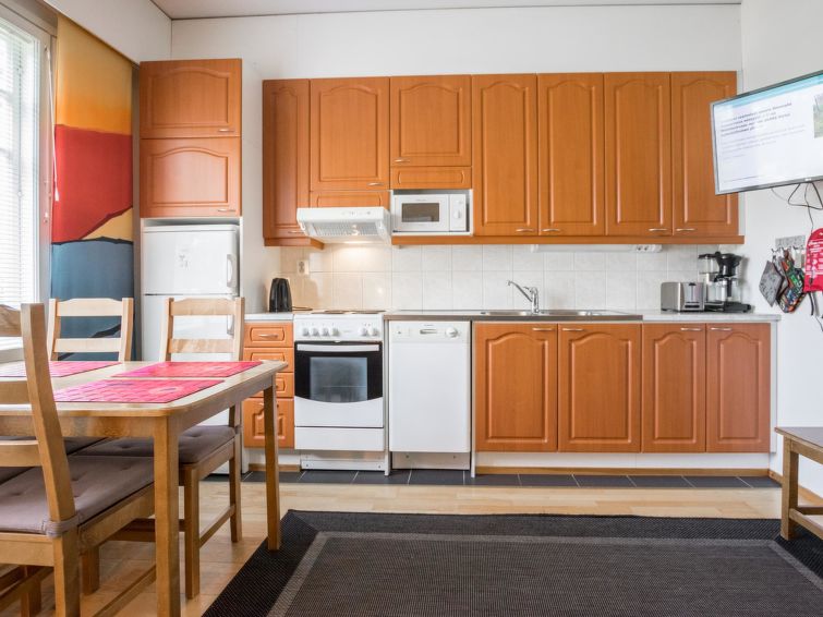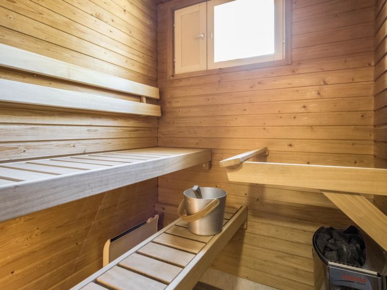The kitchenette has everything you need for cooking and socialising. You can enjoy the warmth of a fireplace while dining, and the apartment's own sauna provides extra warmth after a day's excursions.