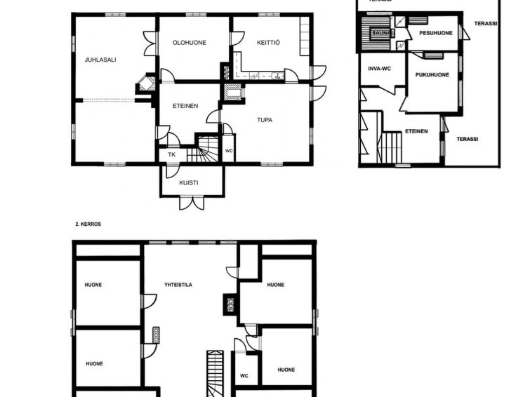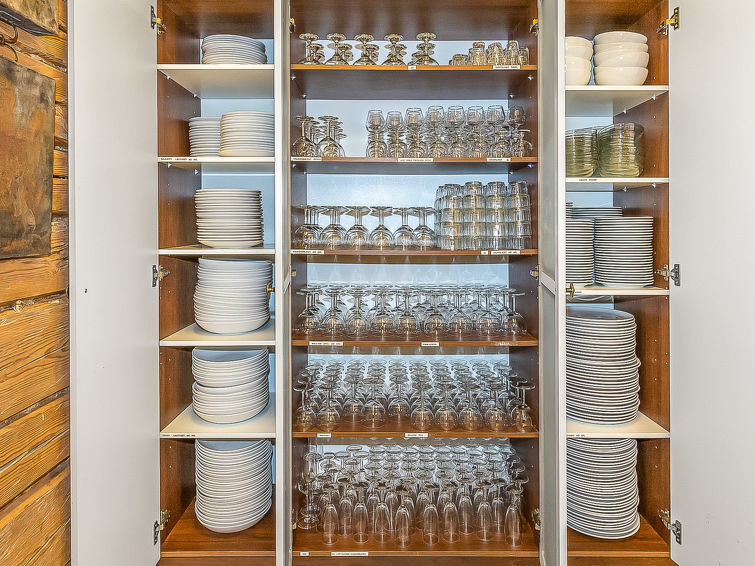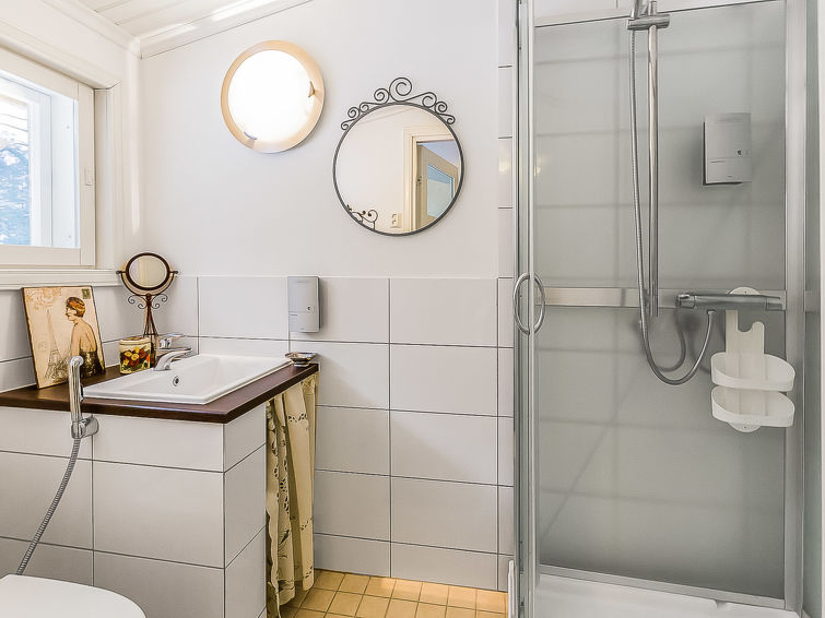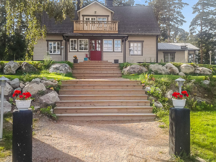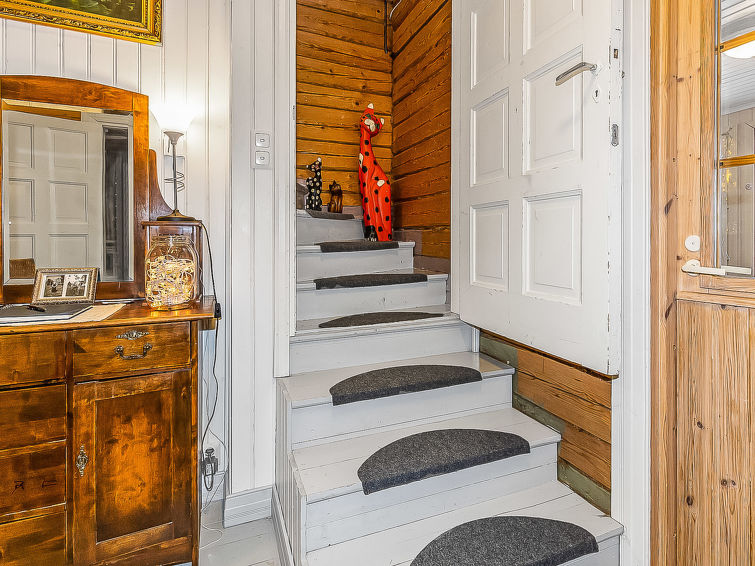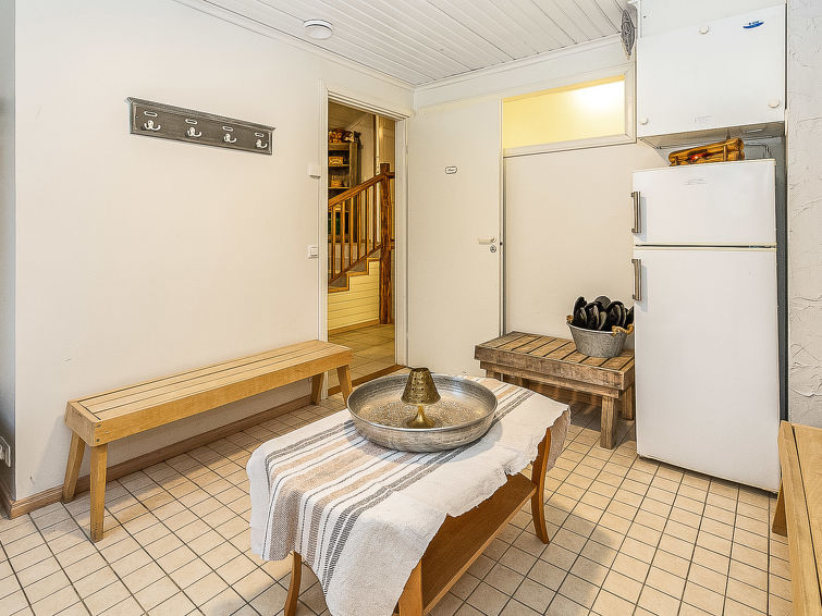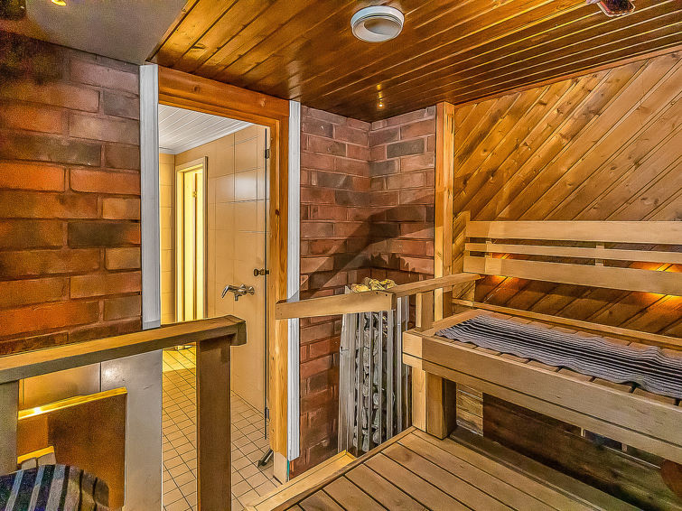 Panelled log house 1932, renovated 2011. Downstairs: kitchen (induction stove), serving room, living room (baking oven), hall, sauna (wood-burning and electric stove), washroom (2 showers), dressing room, 2 WCs.