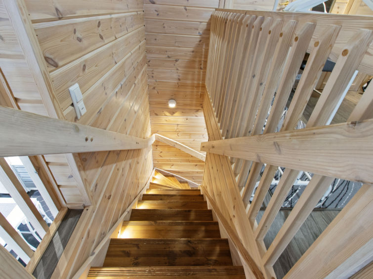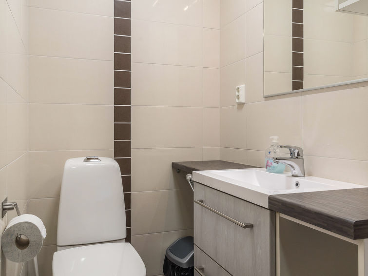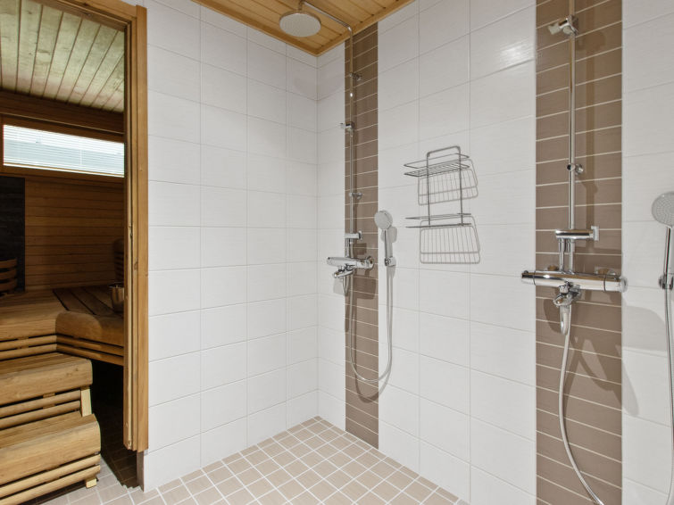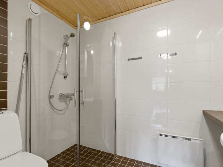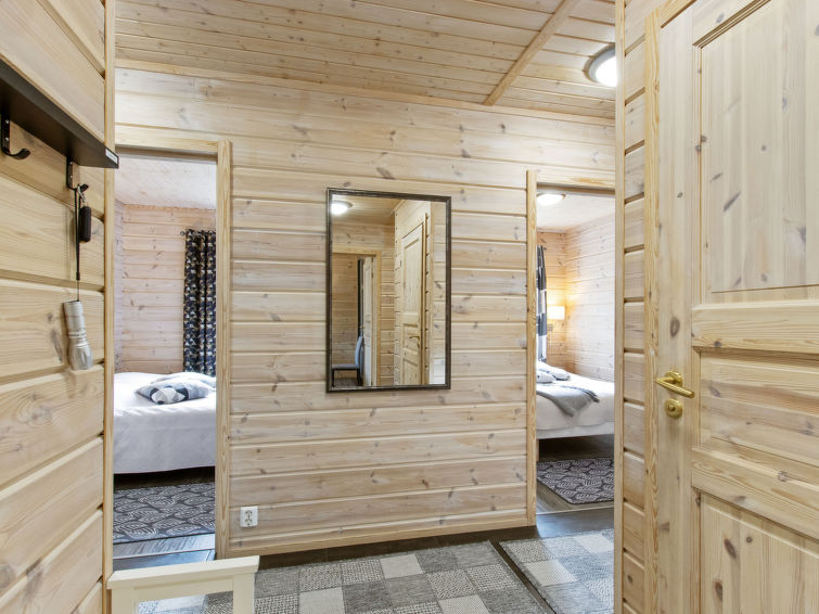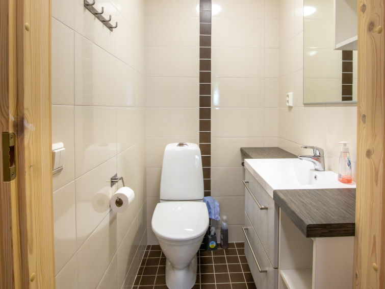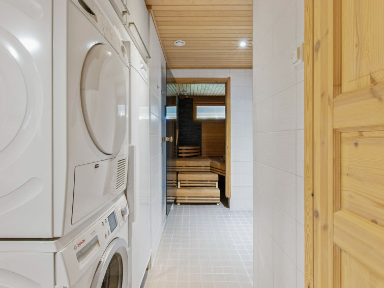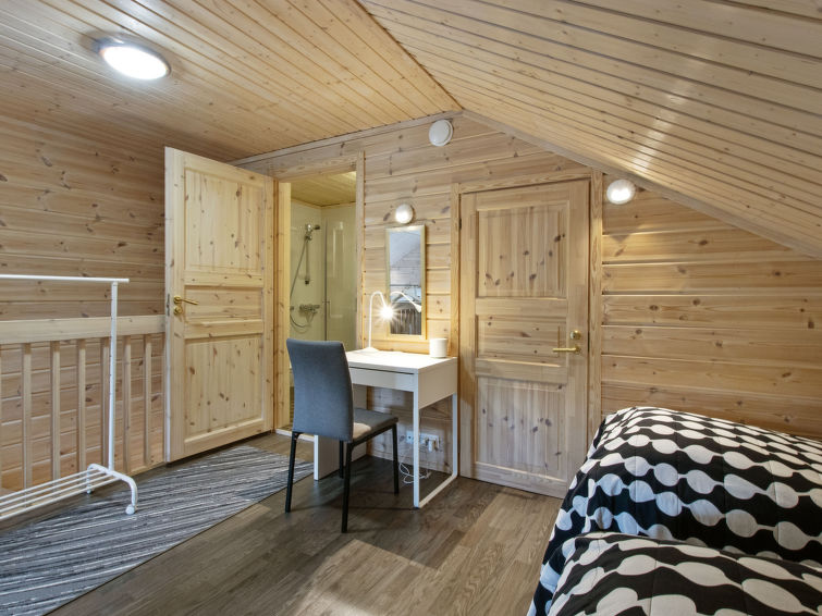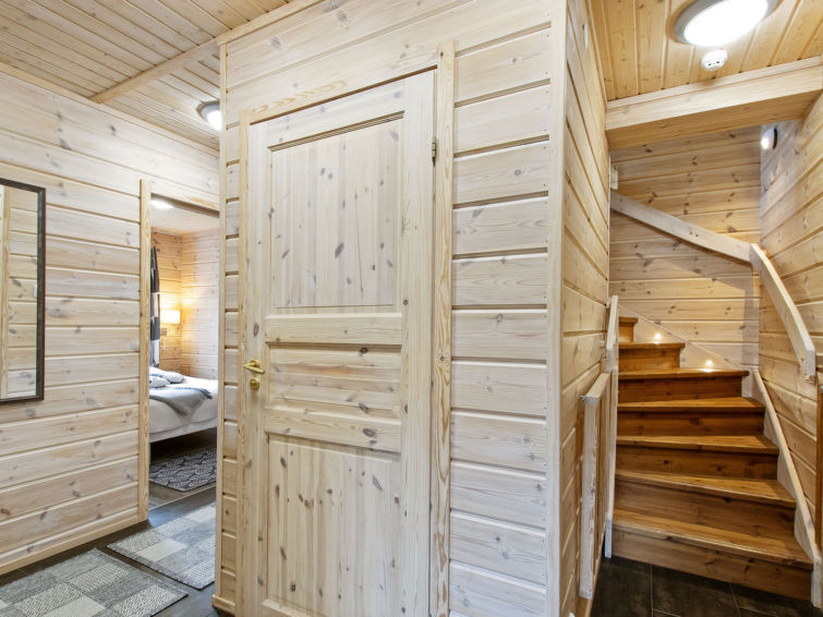 A semi-detached house apartment located 40 km north of Kolari in the Äkäslompolo village Maahinen area, build 2013. Area 88 m² + loft 23 m². Three bedrooms downstairs, two with two beds (90 x 200 cm and 80 x 200 cm) and one with double bed (width 140 cm), loft with 4 beds (80 x 200 cm), livingroom/kitchen, 3 toilets, wash room, sauna (electric), drying cupboard for clothes, washing machine, tumble-dryer, second TV on the loft. Walk-in shower also in the toilet in the loft. Baby bed, travel cot (incl. duvet and pillow), high chair, potty, plastic snow sledges and a kick sled. Wi-Fi. Mechanical ventilation. Shared ski maintenance room. Solar panels installed in the spring of 2023. Homey, spacious apartmen in the Äkäslompolo village Maahinen area. No pets allowed. Prices included final cleaning, bed linen are available for rent.