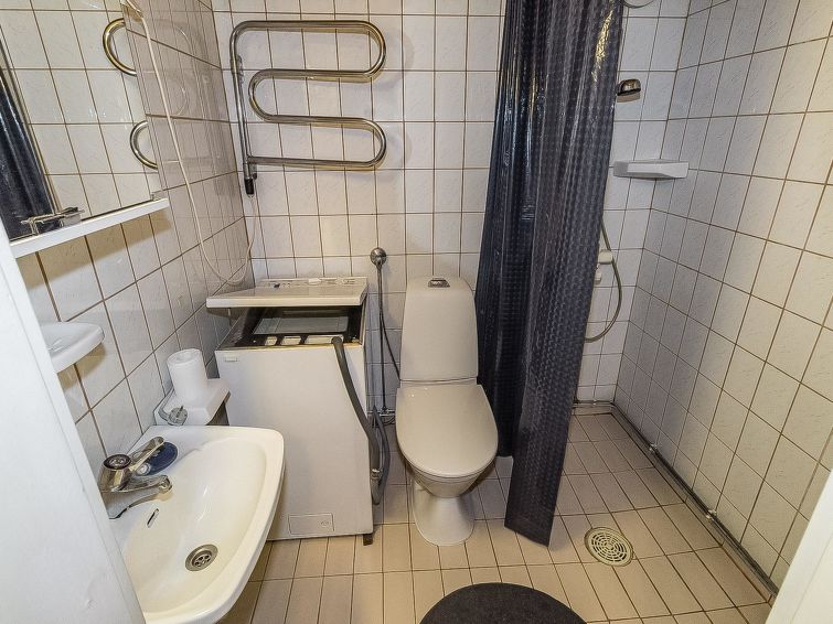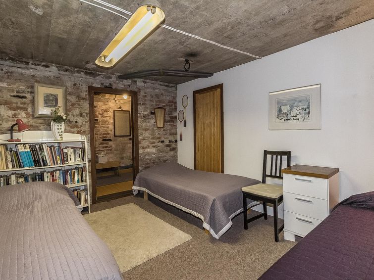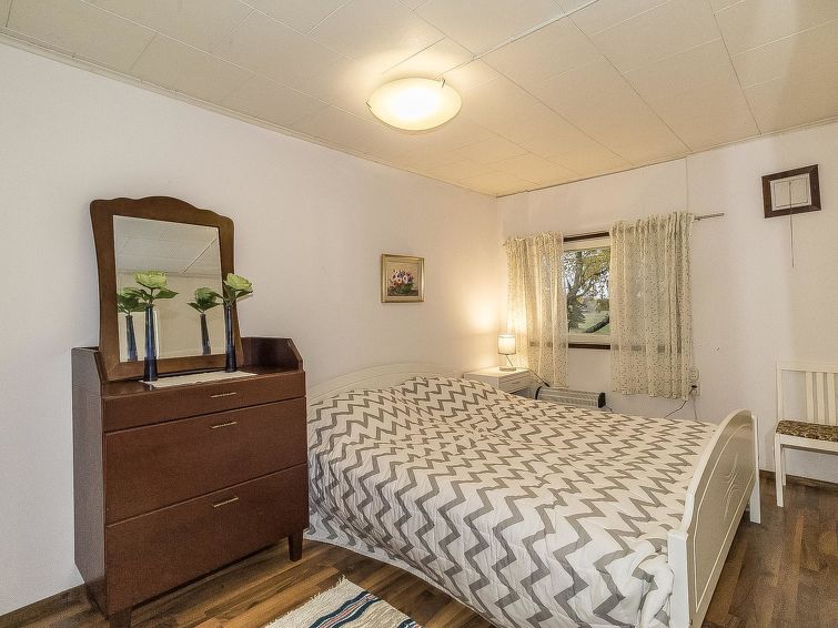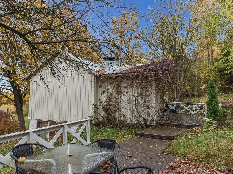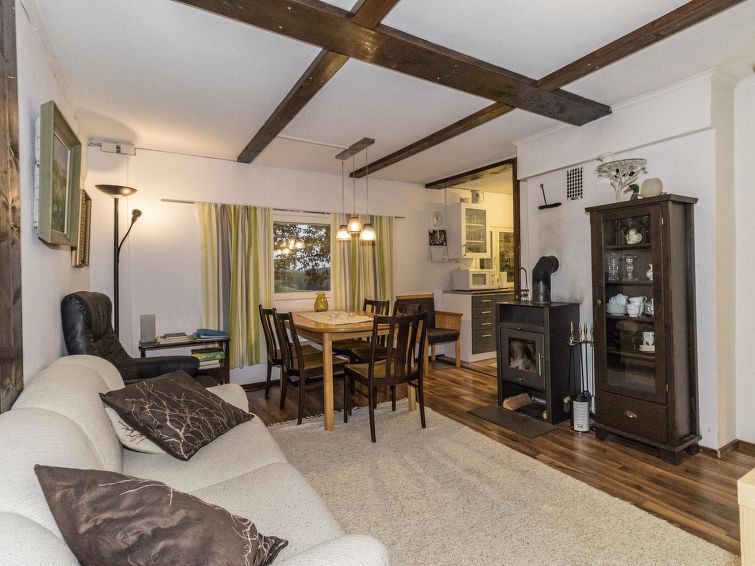 Wooden cottage 1950, renovated 2008-2009, living room/kitchen, bedroom double bed, small sleeping alcove 1 bed, bathroom with shower, WC and washing machine, clothes closet. Downstairs sauna (wood-burning stove), washroom with shower and hot water cauldron, dressing room, bedroom 2 beds. Terrace 20 m².