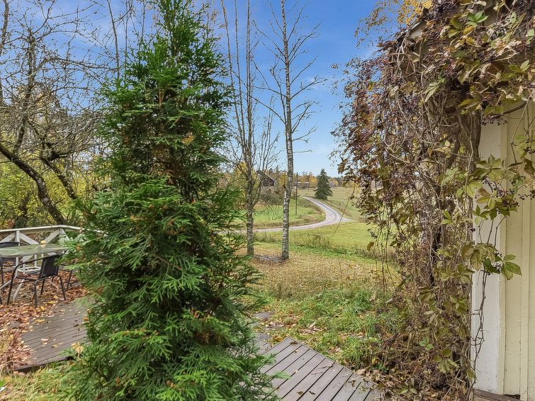 Old-time, "romantic garden with cottage", so-called “dry land cottage” (i.e. not near lake), Lake Lohjanjärvi 1 km. Leafy yard area, lawn, apple trees, berry bushes, lilac trees and various shrubs. Plot covers 2000 m². Neighbour is same owner’s other rental cottage (8446) and owner’s own house.