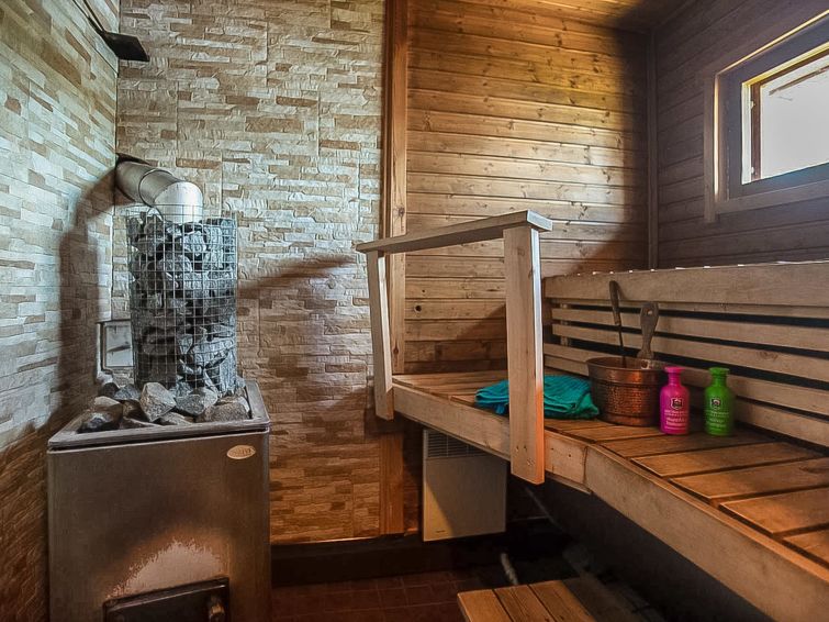 Wooden cottage 1985 (renovated 2007, 2015, 2019). Living room/kitchen convertible sofa/double bed, 2 bedrooms each with double bed, dressing room, washroom, sauna, terrace.