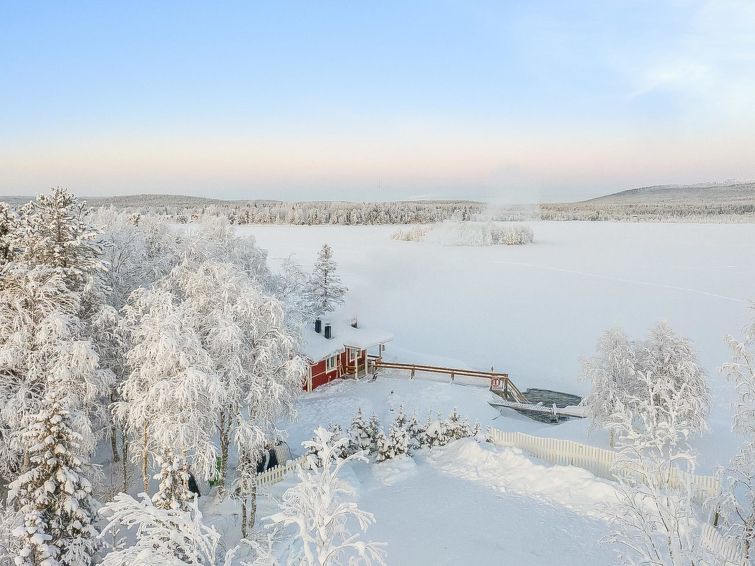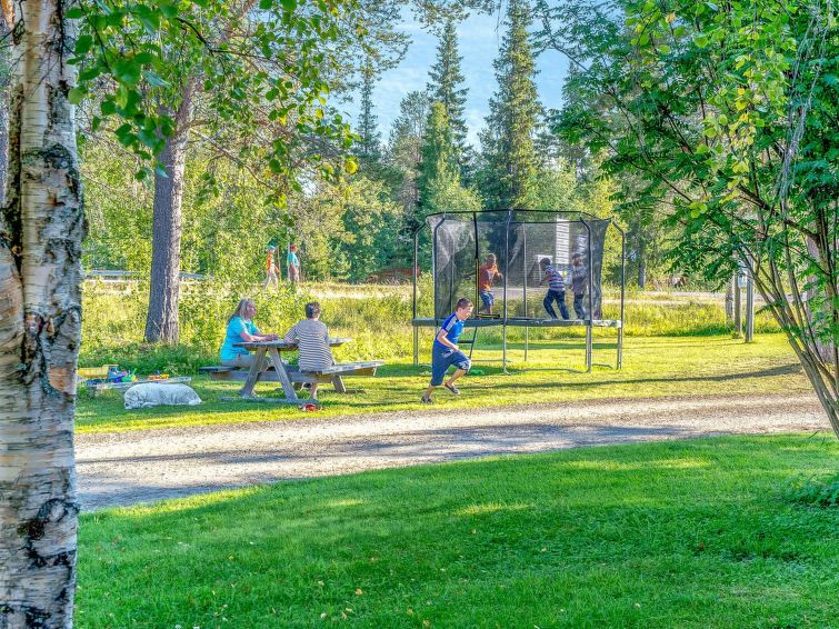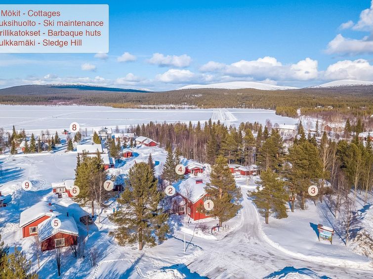 Kittilä airport 50 km. Notice! from 18.7.2022 pets are not allowed. Not suitable for people with animal allergies. Final cleaning, bed linen and fire wood are included in price.Guests may use roofed grill, a lean-to, and a gas-fired barbecue grill. If required, equipment for children can be provided in cottage: cot, baby feeding chair, potties, safety seat for bicycle, simple ‘ahkio’ sleds, toboggans, slides and Stiga-style ‘bob-sleds’. Washing machine available for use in shared facilities. In winter fully equipped, with heated ski care facility and kick-sleds. In summer fishing rods (worm bait) for children, playhouse, swings, trampoline and sand boxes. Airport (Kittilä) 50 km.