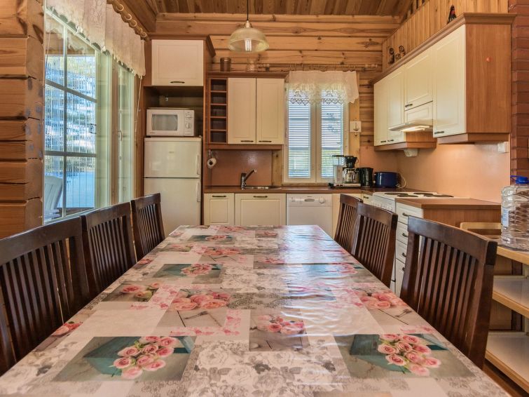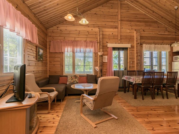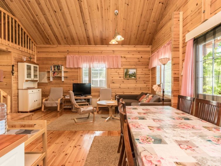 Log cottage 2005, living room/kitchen, 2 bedrooms 2 beds in each, sleeping loft 4 beds, porch, sauna, washroom, dressing room, toilet. Wi-Fi. Satellite tv. Owner will supply the cottage with a starting amount of 30 l of drinking water. More water can be picked up from the faucet in the owner’s yard.