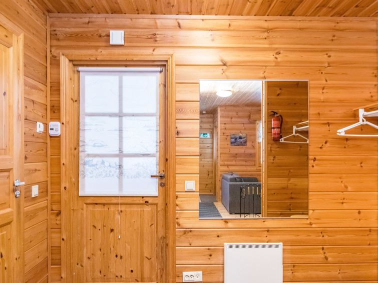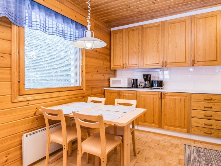 A semi-detached house located in the vicinity of Paljakka ski centre, only 200 m from the downhill slopes/lifts. Distance to Lake Rakennusjärvi 200 m / 219 yds (1 km / 0.62 mi long and 200 m / 219 yds wide). Built in 1989. Living room with kitchenette, bedroom with double bed (145 cm), 2 x sofa bed in the living room, sauna with adjoining dressing room and WC. Firewood includes in price.