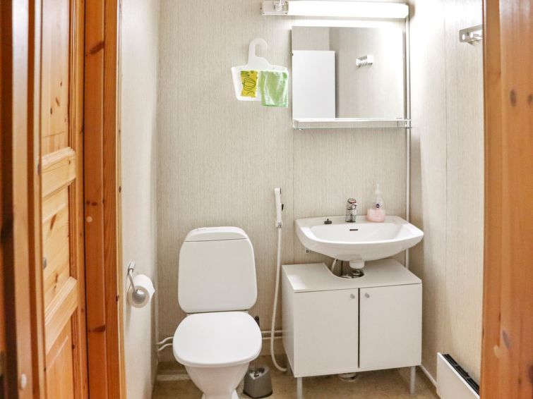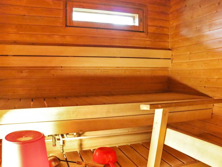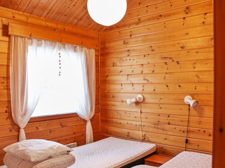 A semi-detached house located in the vicinity of Paljakka ski centre, only 200 m from the downhill slopes/lifts. Distance to Lake Rakennusjärvi 200 m / 219 yds (1 km / 0.62 mi long and 200 m / 219 yds wide). Built in 1989. Living room with kitchenette, bedroom with two 90 cm bed, Loft two 90 cm beds and sofa bed (115 cm x 180 cm), sauna with adjoining dressing room and WC. Firewood includes in price.