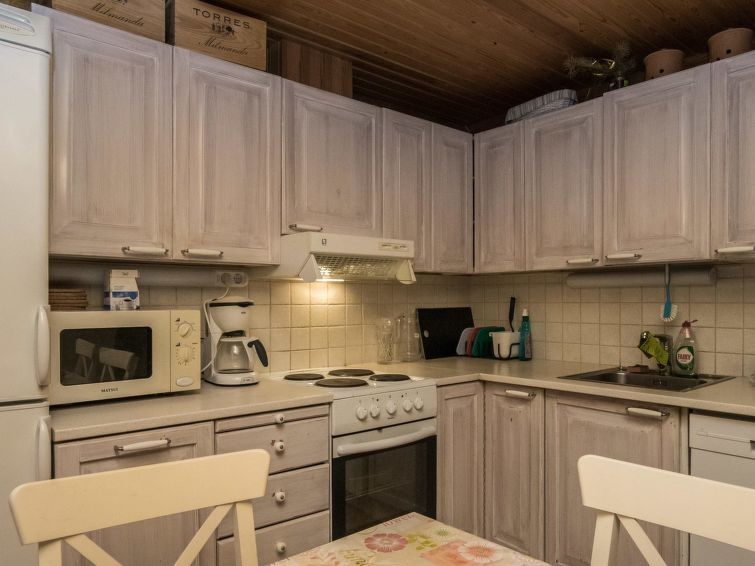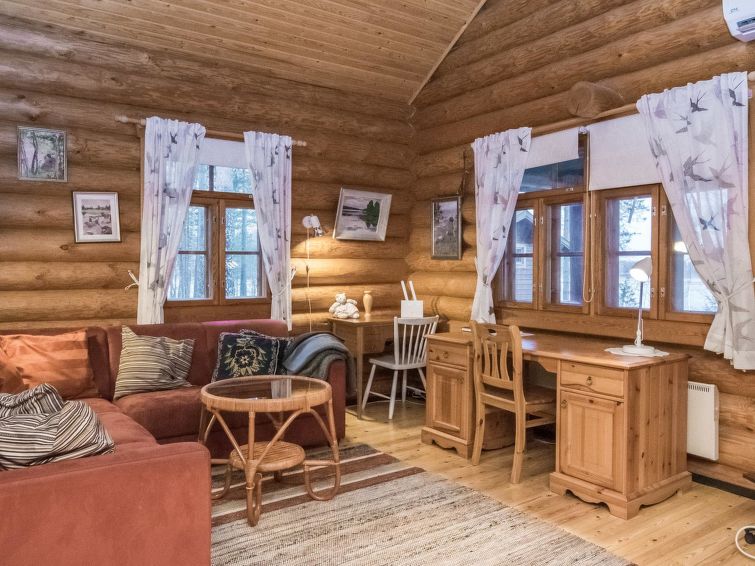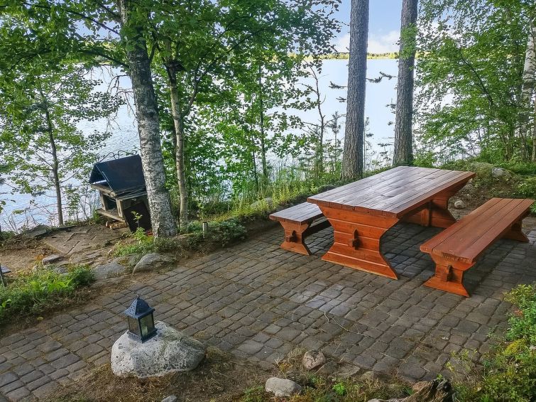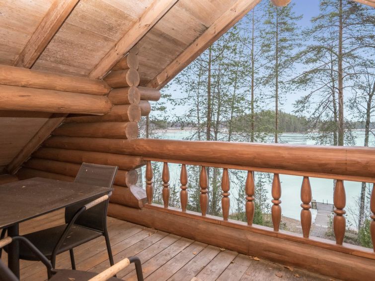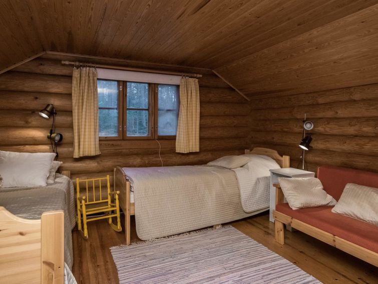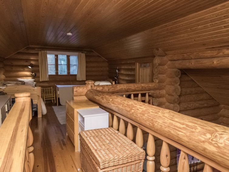 Log cottage 1987, living room/kitchen, bedroom with double bed. Upstairs 2 beds and convertible sofa bed for two. Sauna, washroom with shower and WC. Porch, terrace, balcony. Air source heat pump for cooling.