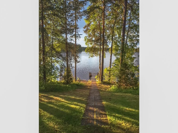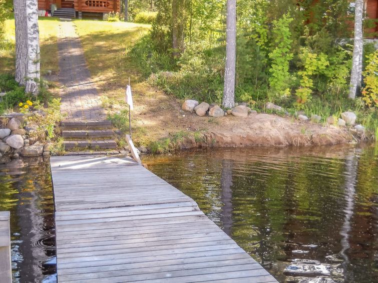 Nearest neighbour 40 m, visible only from upper part of yard, own shore is very private. On jetty sounds can be heard from main road (road no. 14) and railway (0.5 km); traffic also partly visible from jetty. Aircraft sounds also sometimes heard from small plane airstrip (0.4 km). Car park in winter 50 m (behind a very sharp curve).