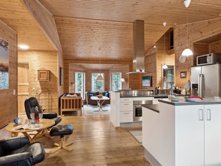 Enmannsbolig, bygget i 2007. 8 km fra sjøen. Privat: uberørt tomt 1'246 m2. Grill, lekeplass (huske). I huset: badstu, vaskemaskin, tørketrommel. Parkering ved hbrukt. Daglivarehandel 4 km. Eieren godtar ikke noen ungdomsgrupper.