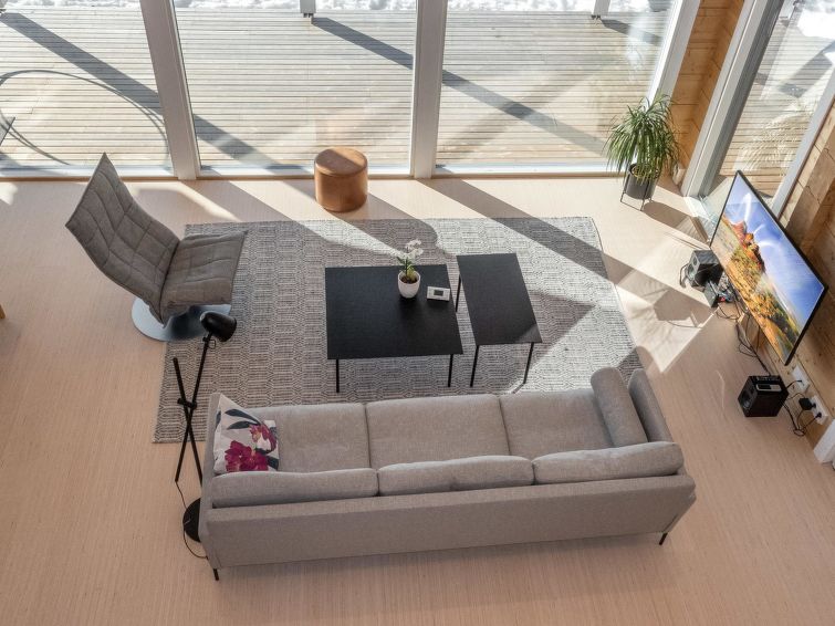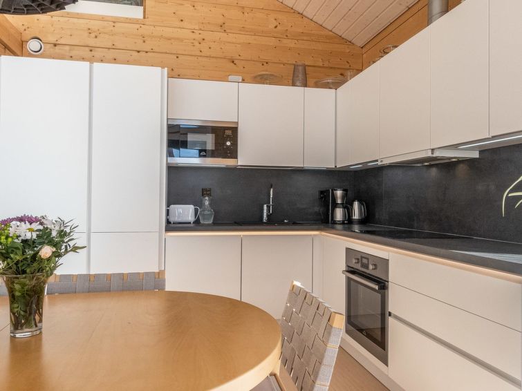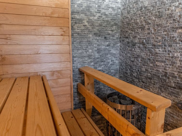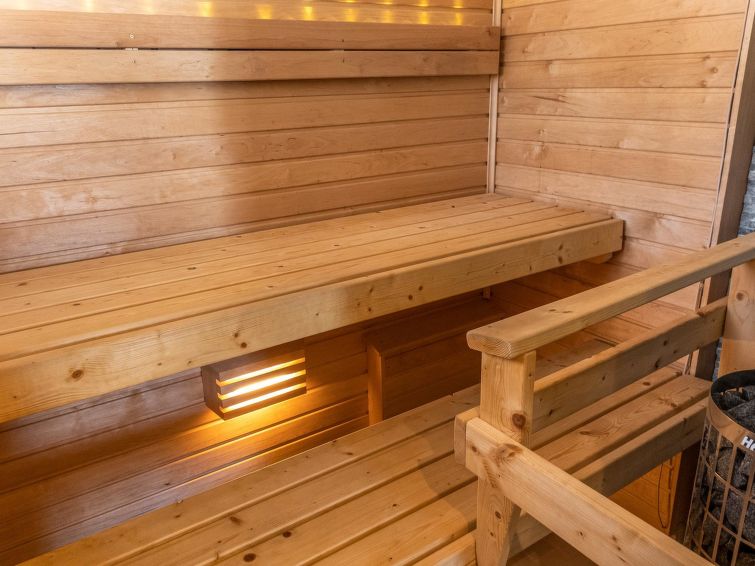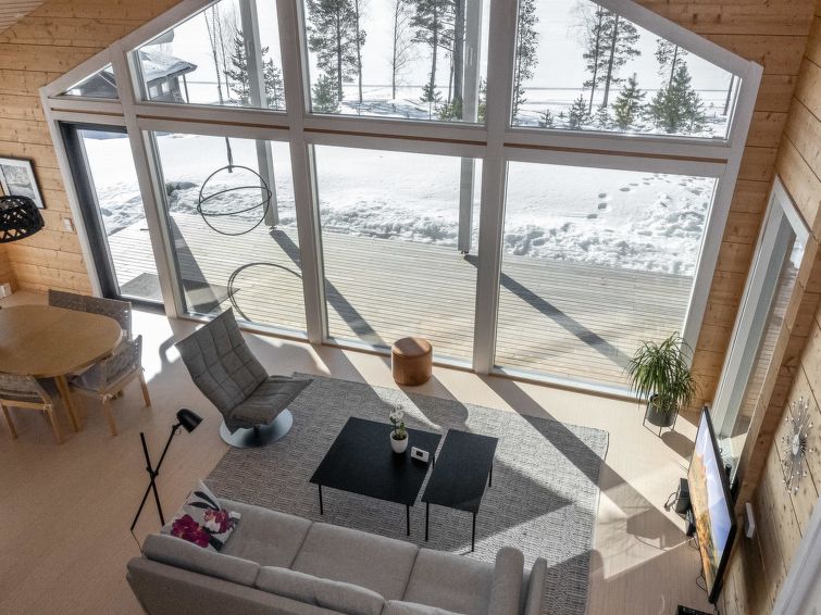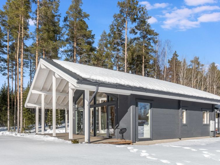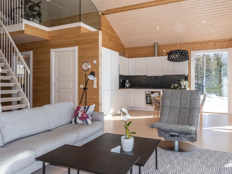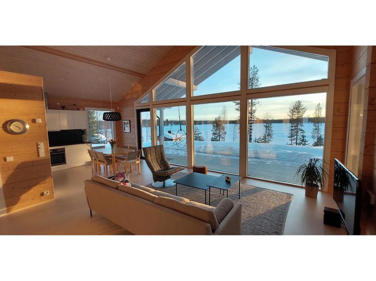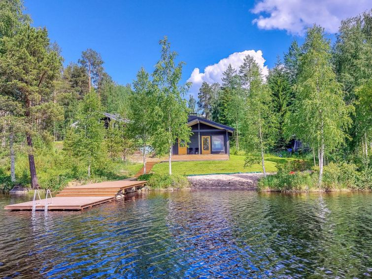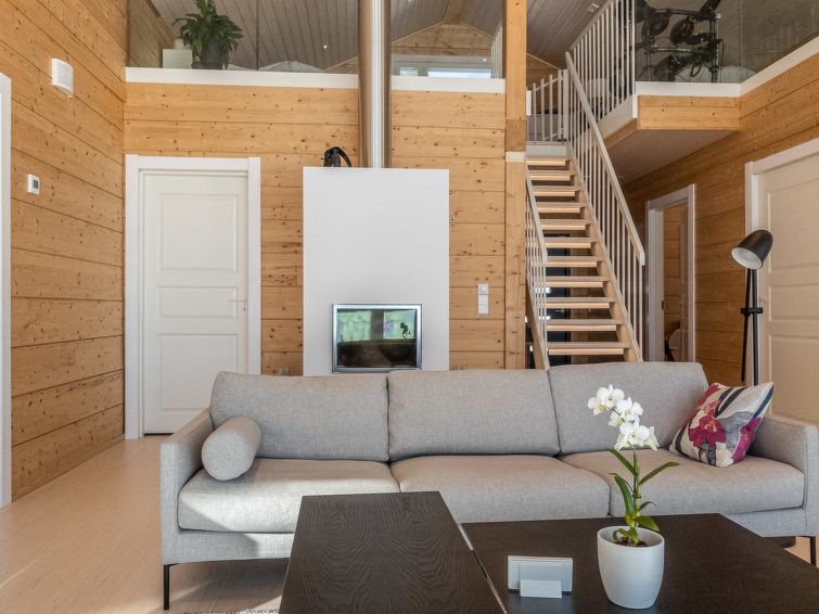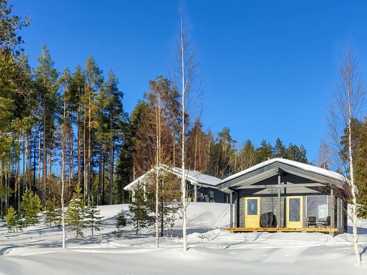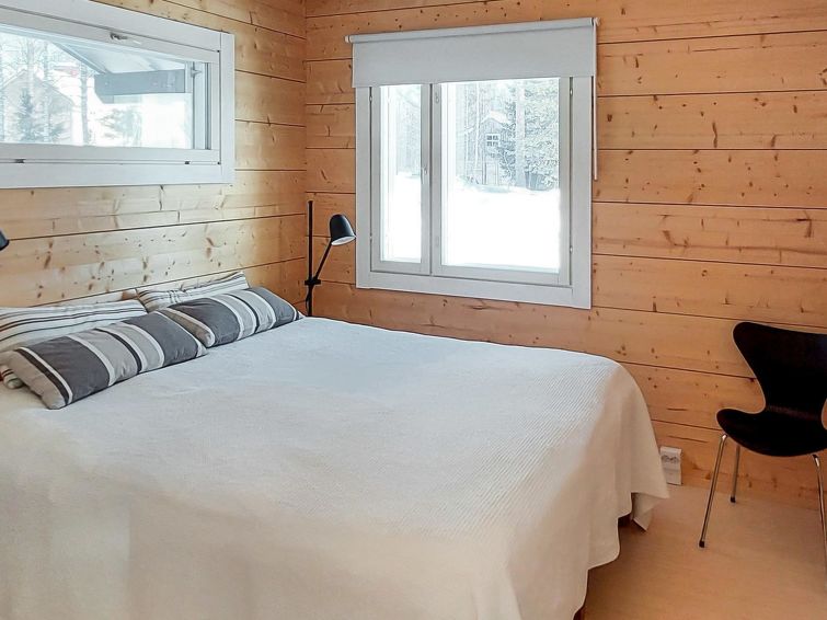 Lamel log-built villa, living room / kitchen with large windows facing the lake, bedroom with double bed, another bedroom with two separate beds (beds can be connected into double bed), loft with two beds (can be also connected into double bed). Sauna and washroom/WC, separate toilet, covered terrace and open terrace.