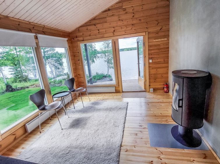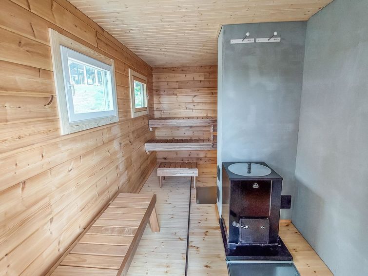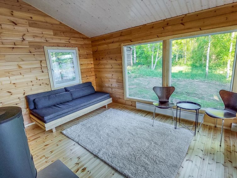 The lakeside sauna (14 m²) has sauna room, washing space and living room with a fireplace. There is a sofa bed in the living room. Sofa bed in the living room is for summer use in June-September at an additional cost (to be agreed with the owner). The sauna is electrified, but there is no water supply. Water to the sauna must be carried from the lake by using a bucket.
