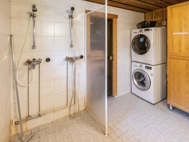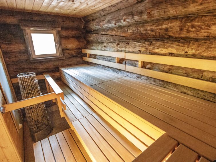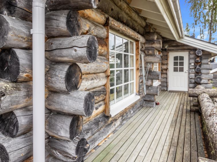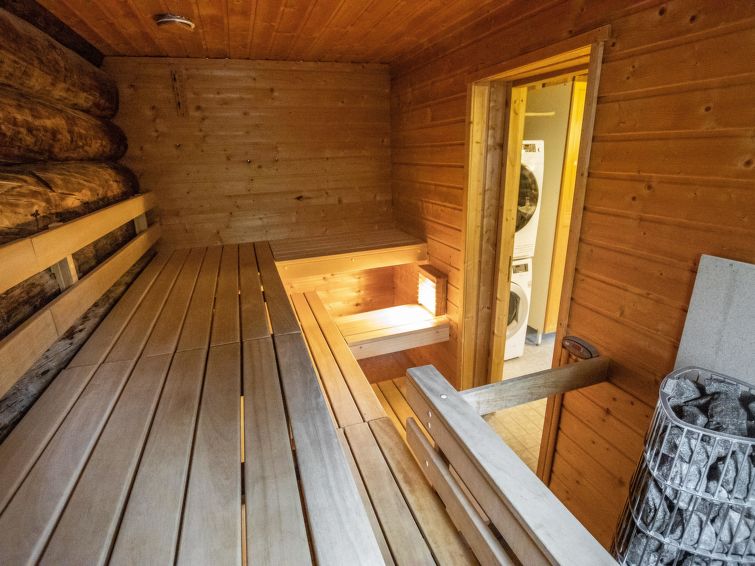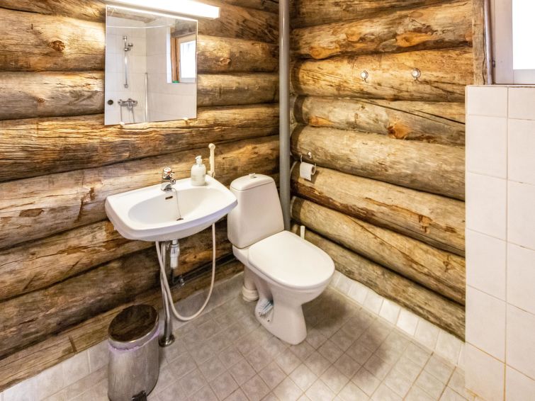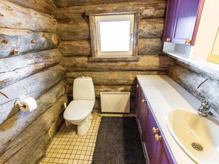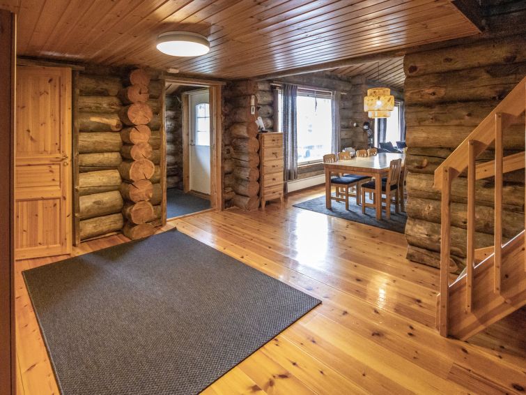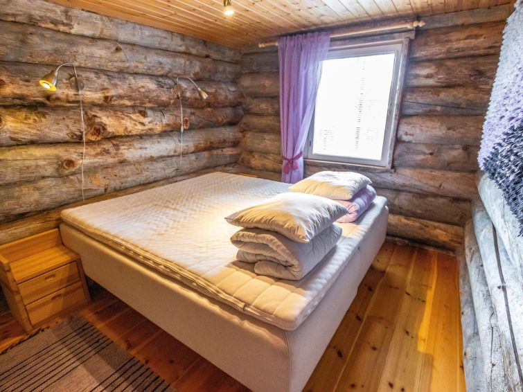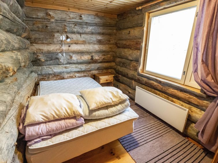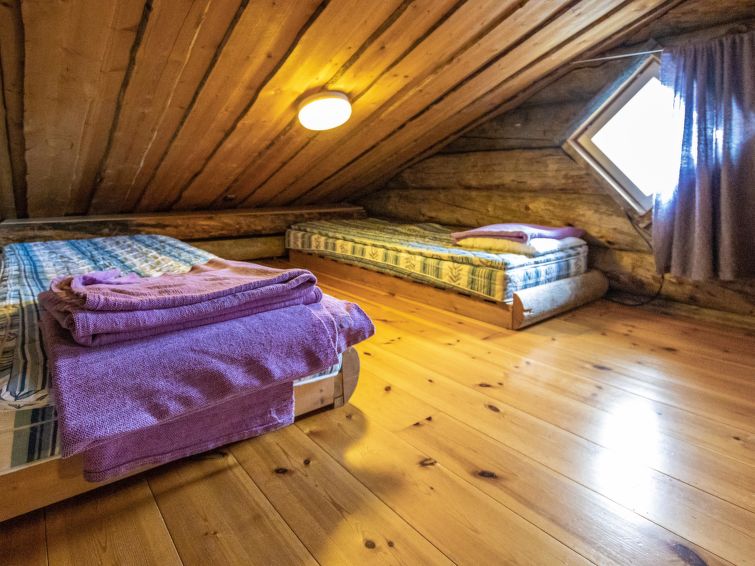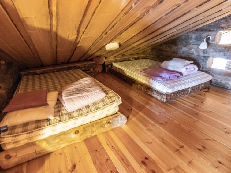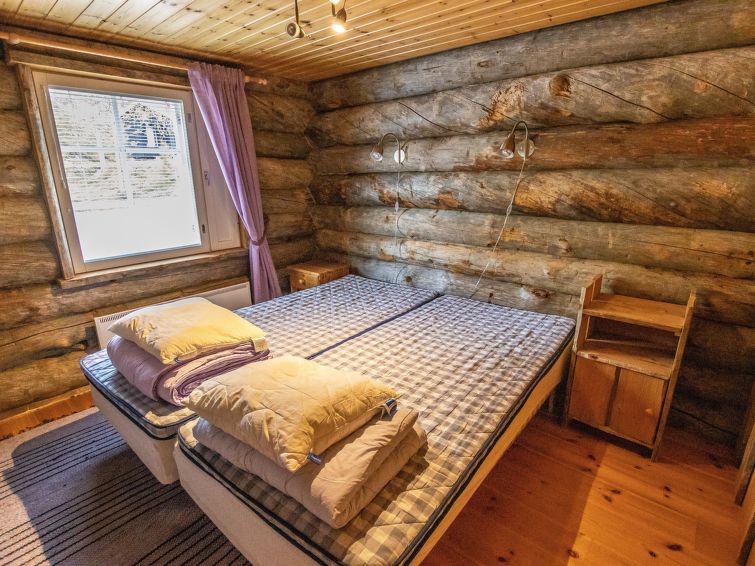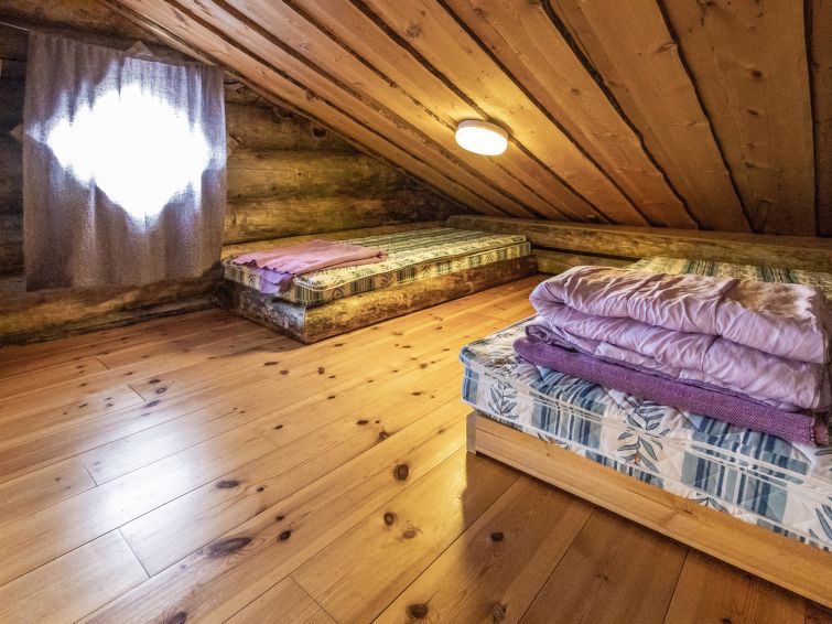 40 km North-East of Kolari, lake Ylläsjärvi 3 km, swimming beach 4 km. Log cottage, built 1990. Livingroom/kitchen, two bedrooms with 2 separate beds, one bedroom with 1 bed (120 x 200 cm), loft (40 m², sloping ceilings, highest point under 160 cm) with 6 beds ( 4 beds 80 x 200 cm and 2 beds 120 x 200 cm).Electric sauna, shower/toilet, separate toilet. Please notice that cottage is rented max. 9 people. Good quality log cottage situated in the Ylläsjärvi village Palovaara area. Location ideal for winter sports. Hiking routes nearby. Hotel Ylläsrinne is the closest hotel. No pets allowed. Prices include final cleaning, bed linen are available for rent.