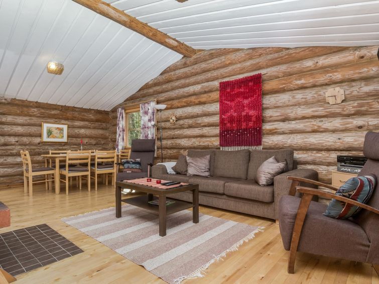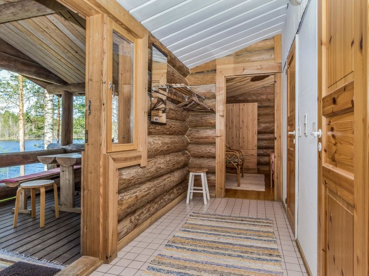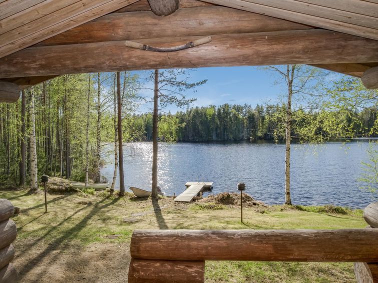 21 km north-east of Mikkeli, lake Saarijärvi 15 m (length 8 km, breadth 3 km), quite shallow water, hard, rocky sandy bottom, own boat. Log cabin 1999, kitchen/living room, 2 bedrooms 2 beds in each, sleeping loft with two beds for children, dressing room, washroom, sauna, open veranda. Outside power point for the car. Tennis court and other playing fields (football, table tennis, badminton, volleyball and trampoline) shared with other cottages. Bakery/restaurant 7 km. Stereo system (CD, radio, 3,5 mm AUX). Air source pump.