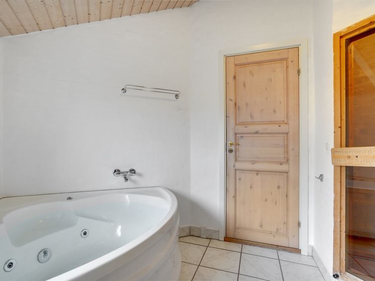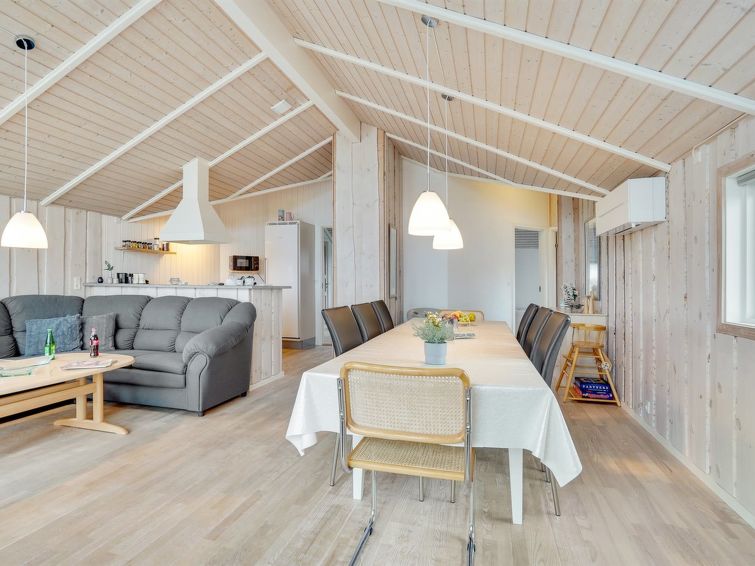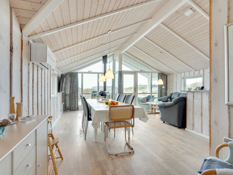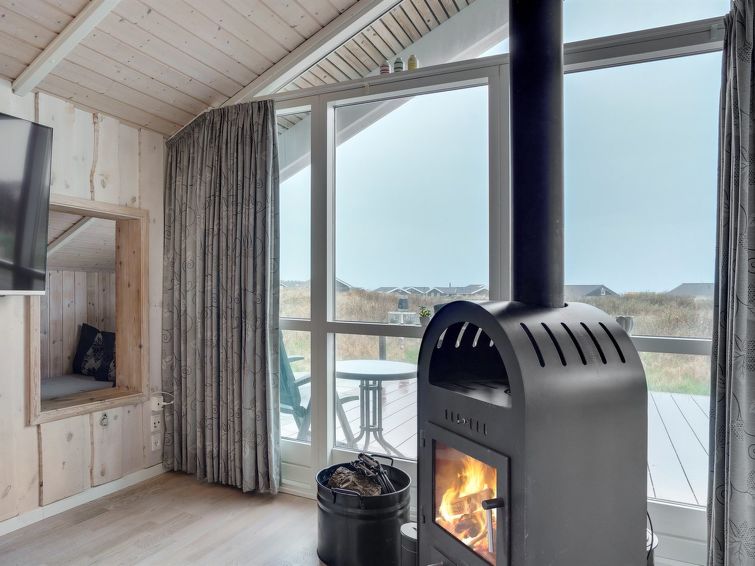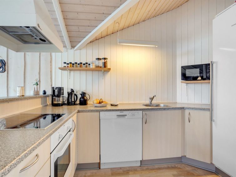 "Patrick" - 300m from the sea in NW Jutland", 4 rom hus 111 m2. Passer for 8 voksne + 1 barn. Stue med, TV, video, CD-spiller og stereoanlegg. 1 rom med, 1 dobbeltseng. 1 rom med, 1 dobbeltseng. 1 rom med, 1 dobbeltseng. 1 rom med, 1 dobbeltseng. Kjøkken (stekeovn, oppvaskmaskin, 4 keramiske kokeplater, mikrobølgeovn, frys). 2 dusjer/WC, boblebad. Terrasse 15 m2, dekt. Fasiliteter: høy barnestol barneseng (ekstra).