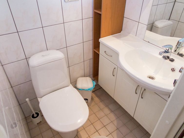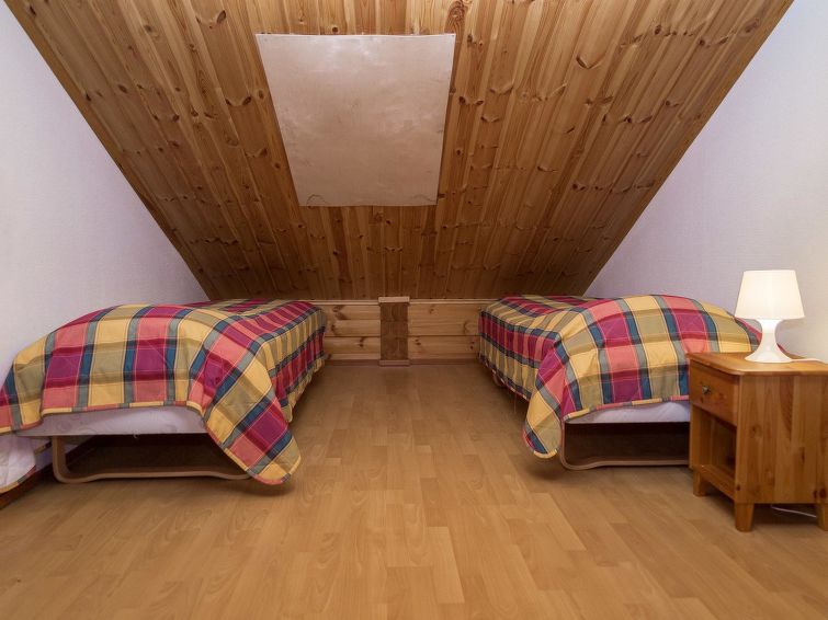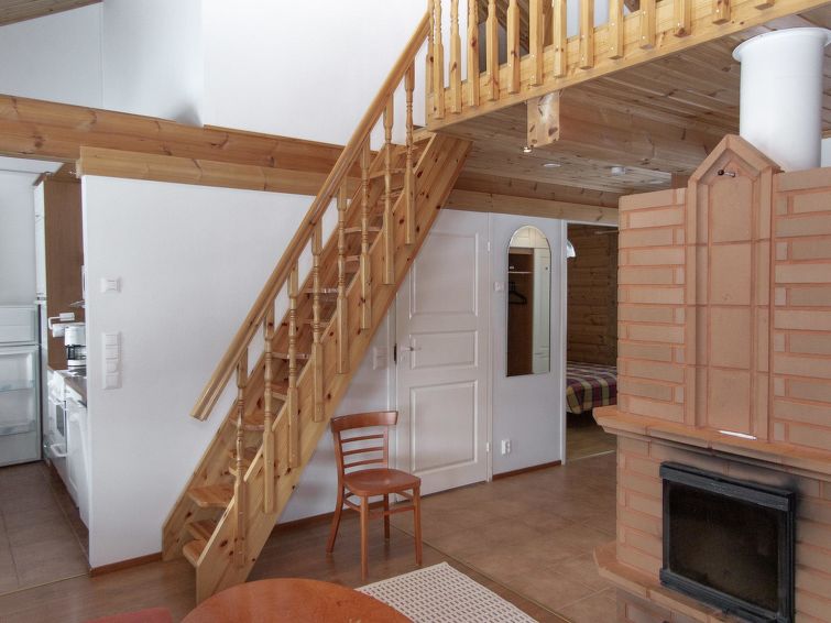 A semi-detached house built 2003, living room kitchen, bedroom with double bed (140 cm wide), bedroom with two beds, a shower room, small sauna (electric stove), separate toilet. Upstairs bedroom 2 beds, sleeping loft with 2 beds. Terraces on both sides of the building. Peiponpesä A holiday apartment in the heart of Ski cnter Tahko. Neighbour apartment is Peiponpesä B (code 13392). 1 High chair and 1 baby cot available by ADVANCE booking (free of charge); please mention in Your booking if You need them. 2 sets of firewood is included in price; more firewood can be purchased from the local shops.