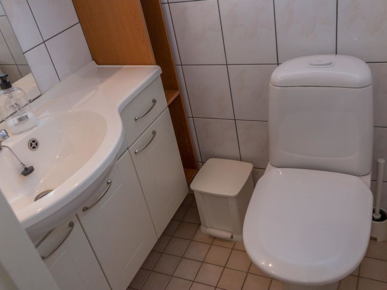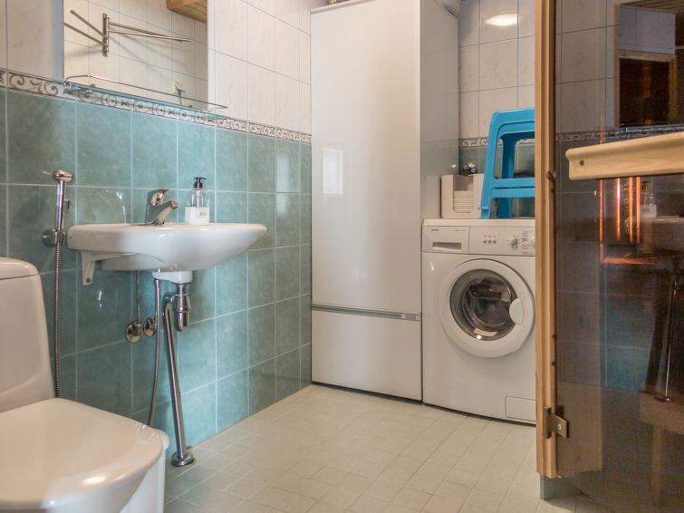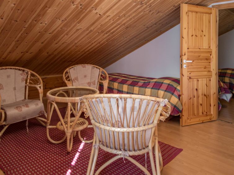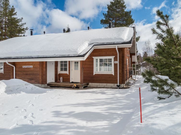 A semi-detached house built 2003, living room kitchen, bedroom with double bed (140 cm wide), bedroom with two beds, a shower room, small sauna (electric stove), separate toilet. Upstairs bedroom 2 beds, sleeping loft with 2 beds. Terraces on both sides of the building. Peiponpesä B holiday apartment in the heart of Ski cnter Tahko. Neighbour apartment is Peiponpesä A (code 13391). 1 High chair and 1 baby cot available by ADVANCE booking (free of charge); please mention in Your booking if You need them.