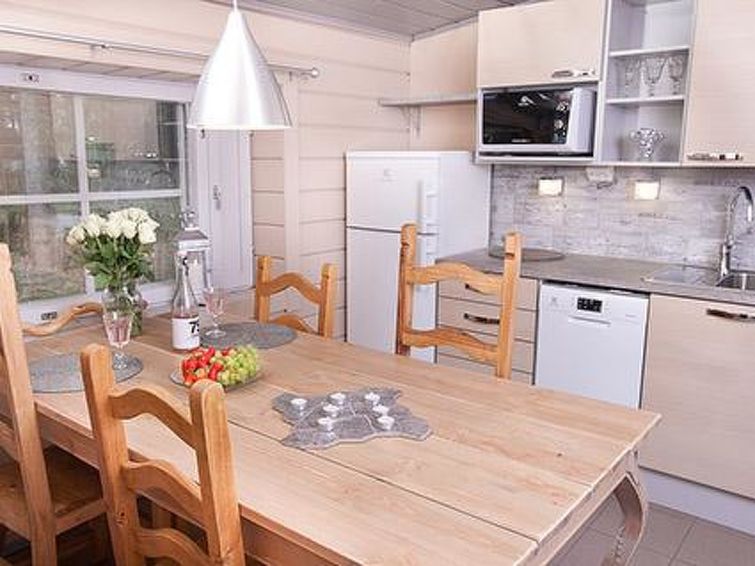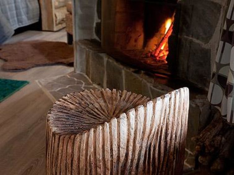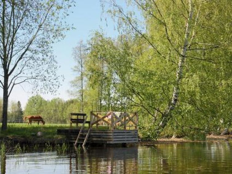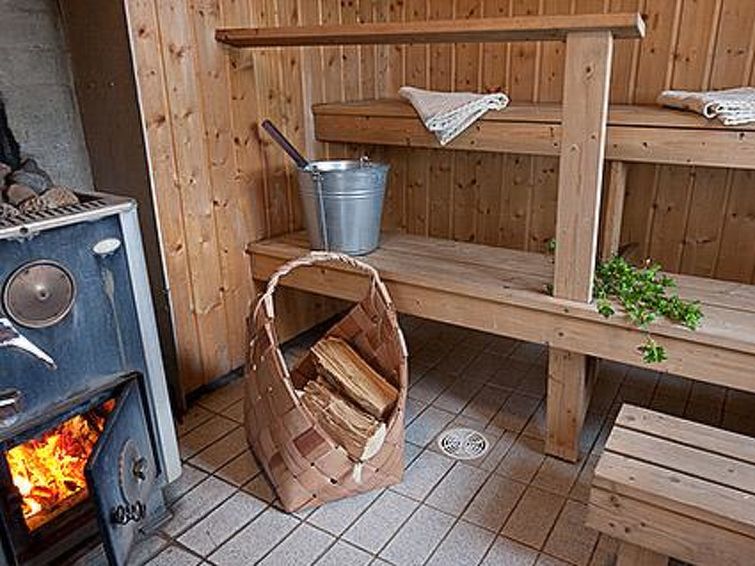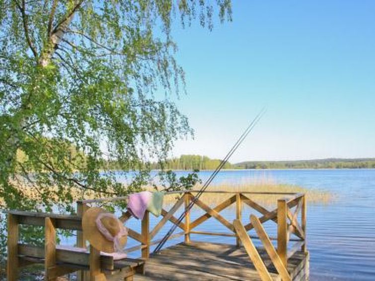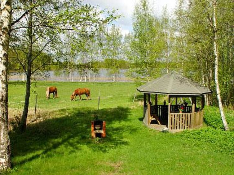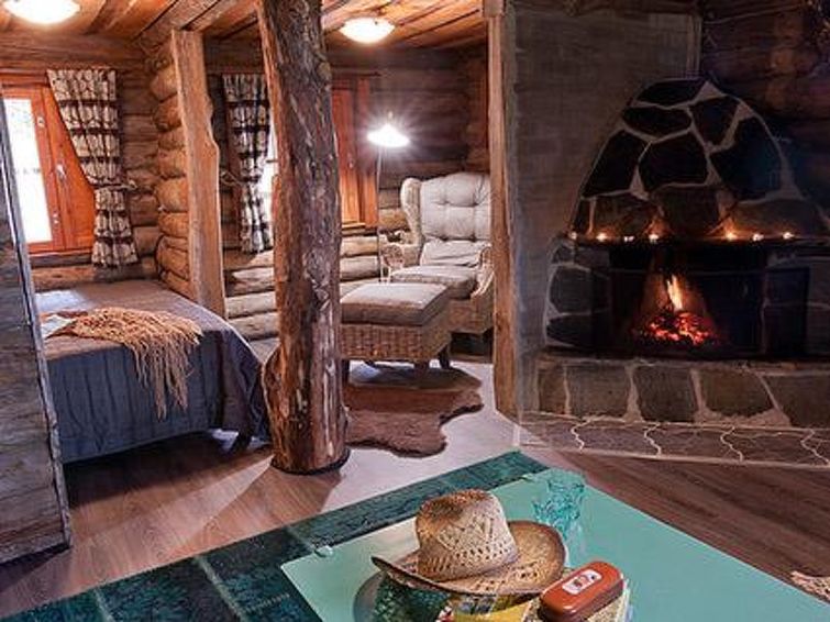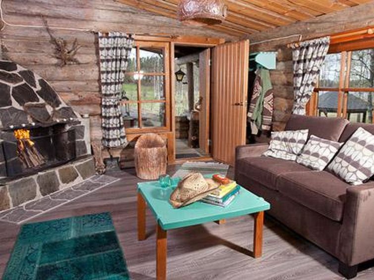 Log cabin 1981, renovated 2015, lounge with fireplace / bedroom (in same room) double bed, kitchen, sauna (wood-fired stove), open veranda. Portable charcoal BBQ grill. Coal must be brought.