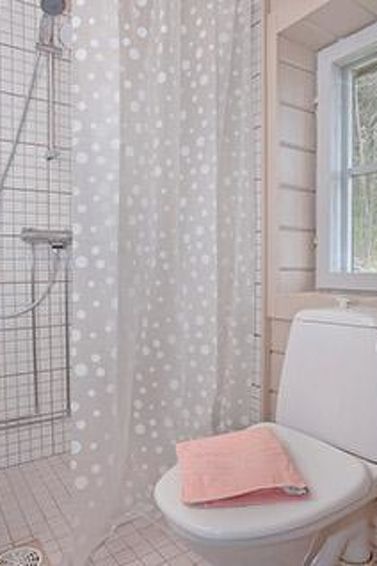 Kitchen refrigerator has a small freezer. Shower both in sauna and toilet.