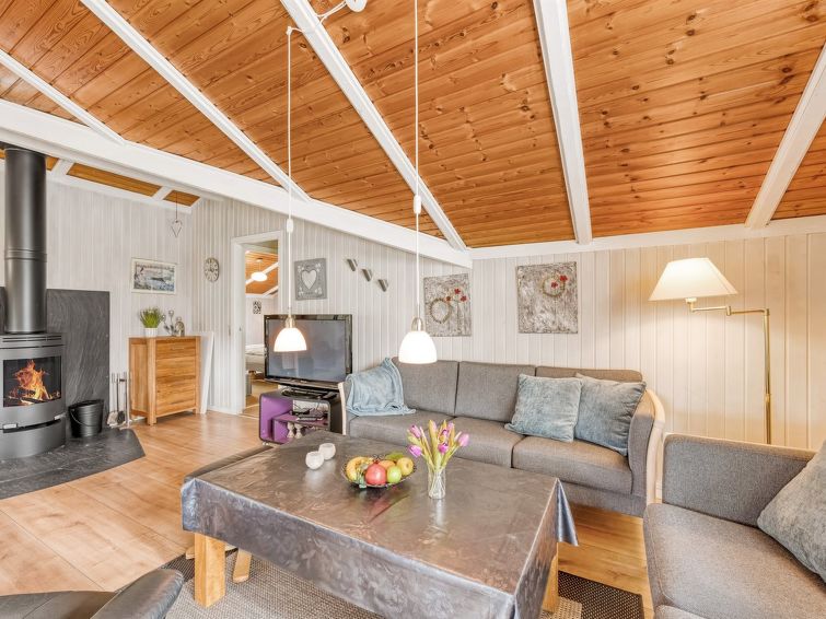 "Penka" - 550m to the inlet in Western Jutland", 3 rom hus 90 m2. Passer for 6 voksne + 1 barn. Stue med, TV, radio, CD-spiller og DVD. 1 rom med, 1 dobbeltseng. 1 rom med, 1 dobbeltseng. 1 rom med, 1 dobbeltseng. Kjøkken (stekeovn, oppvaskmaskin, 4 keramiske kokeplater, mikrobølgeovn, frys). Dusj/WC. Terrasse 5 m2, dekt. Fasiliteter: høy barnestol barneseng (ekstra). Internett (trådløs LAN [WLAN]). Vennligst merk: røykfri bolig.