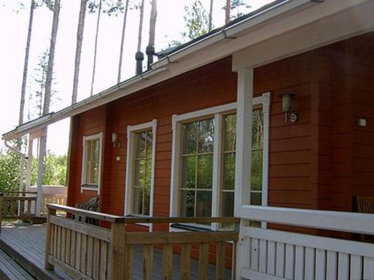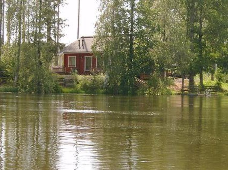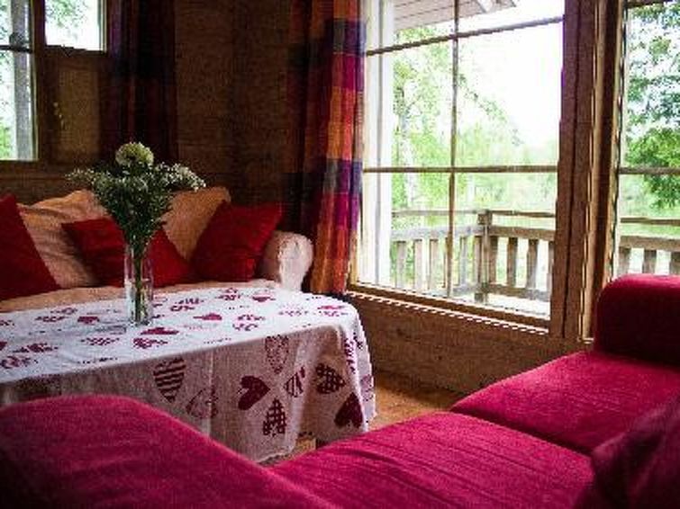 20 km north of Kotka, River Kymijoki 6 m, deep, hard, rock bottom, own boat. Log cottage 2006, living room/kitchen, bedroom double bed, bedroom 2 beds, sleeping loft 3 extra beds, sauna (electric stove), washroom, dressing room, open porch. High standard chalet on bank of River Kymijoki. Air source heat pump with cooling / heating function. Large terrace and peacful and spacious yard area. A four-seat swing in the yard. Shore suitable only for experienced swimmers, as river current close to shore.