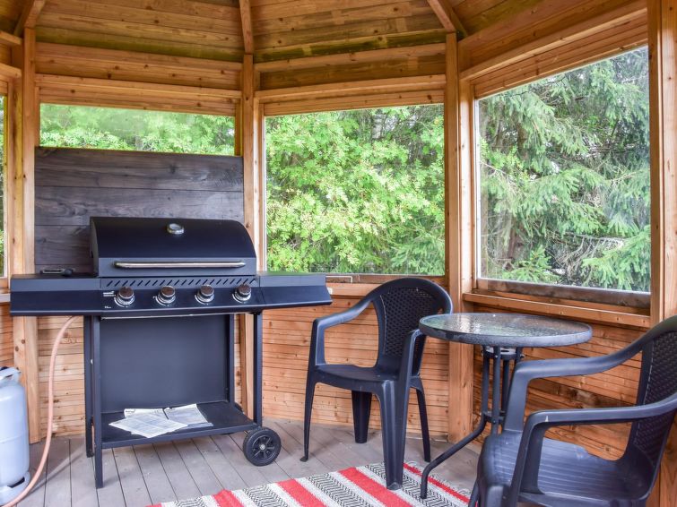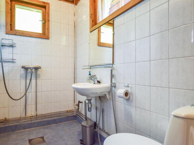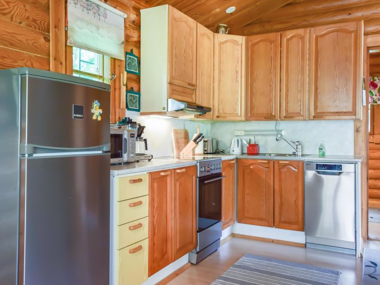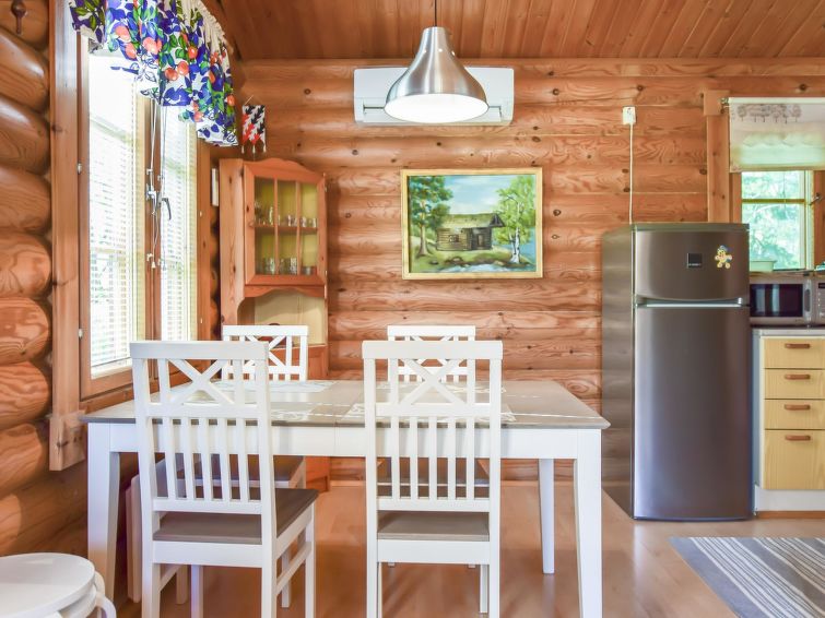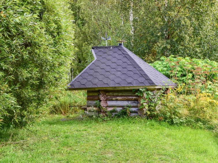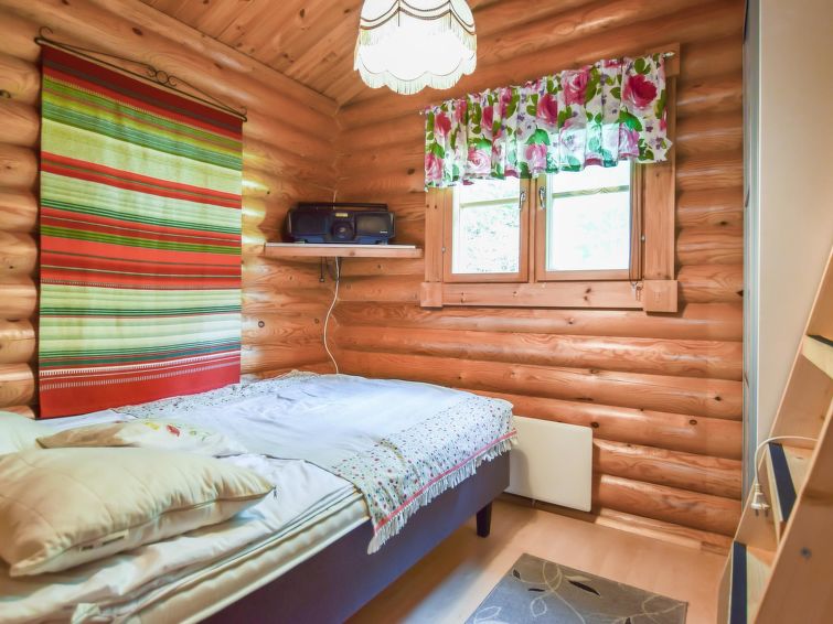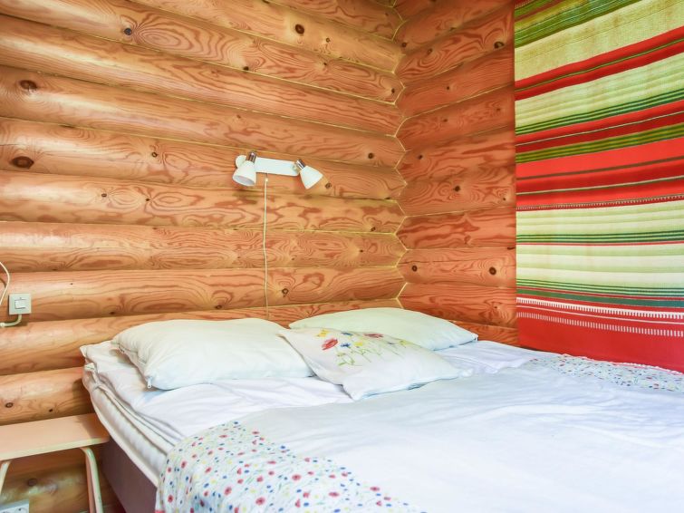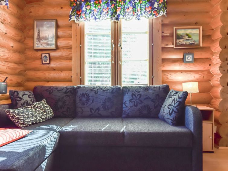 Log cabin in 1991, renovated in 2013, kitchen-living room sofa bed, bedroom with 120 cm wide bed, low loft, a steep staircase, 2 mattresses, shower room, sauna (electric stove), and a terrace.