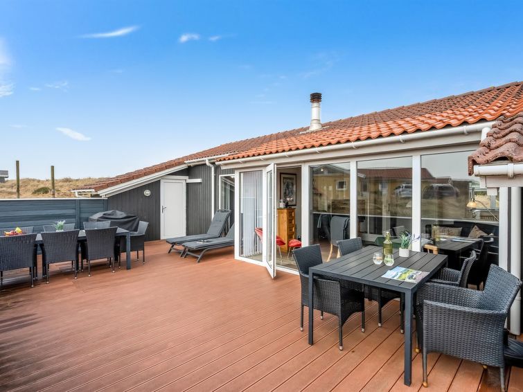 "Petkana" - 700m from the sea in Western Jutland", 5 rom hus 169 m2. Passer for 10 voksne. Stue med, TV. 1 rom med, 1 dobbeltseng. 1 rom med, 1 dobbeltseng. 1 rom med, 1 dobbeltseng. 1 rom med, 1 dobbeltseng. 1 rom med, 1 dobbeltseng. Kjøkken (stekeovn, oppvaskmaskin, 4 keramiske kokeplater, mikrobølgeovn, frys). 2 dusjer/WC. Fasiliteter: høy barnestol. Internett (trådløs LAN [WLAN]). Vennligst merk: røykfri bolig. Max kjæledyr / hund tillatt 1 kjæledyr / hund tillatt.