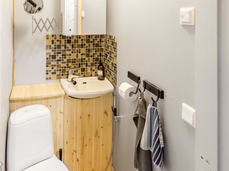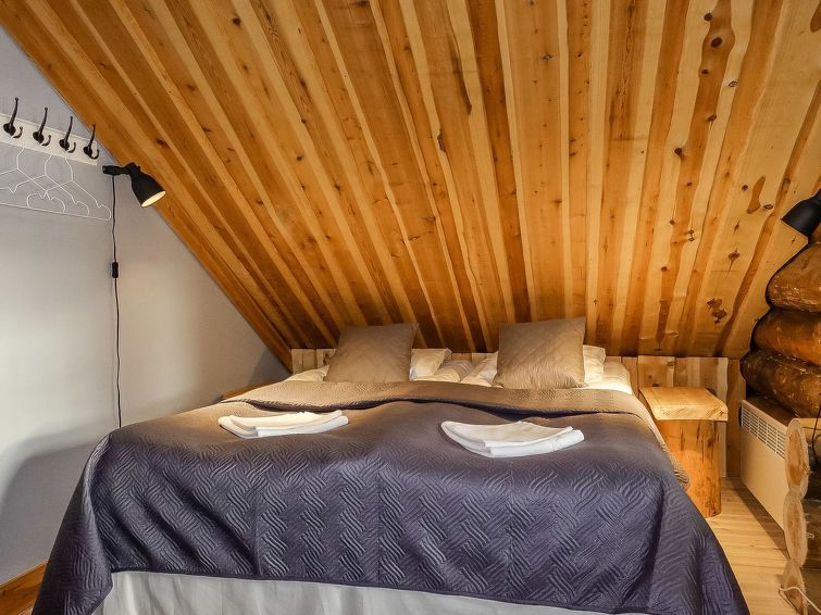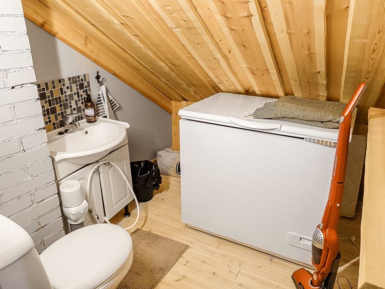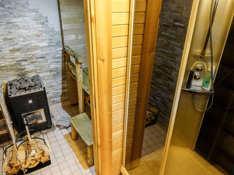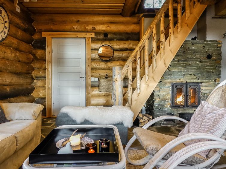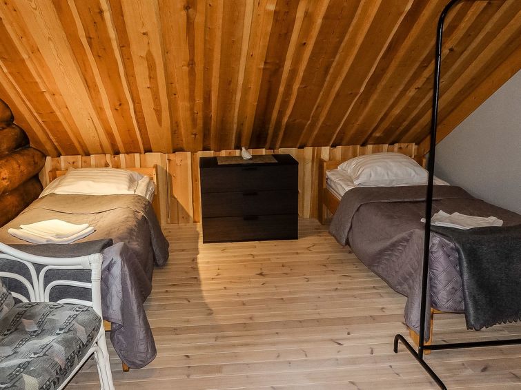 Client has to clean the cottage and barbecue hut carefully before departure if final cleaning is not ordered. A log cabin in a hillside growing northern pines. Cottage is equipped with amenities and built in the style of a wilderness cabin. On the ground floor stone floor and underfloor heating. Upstairs with electric heating.