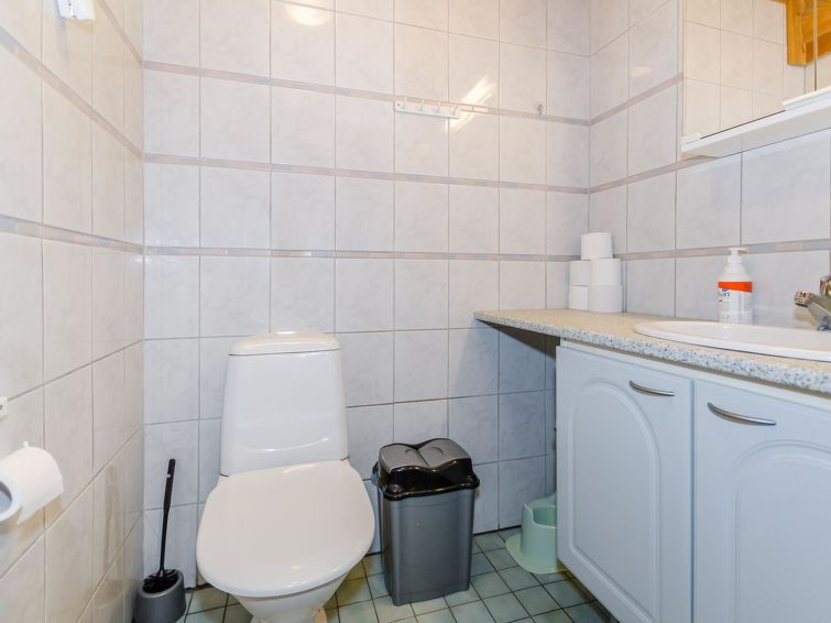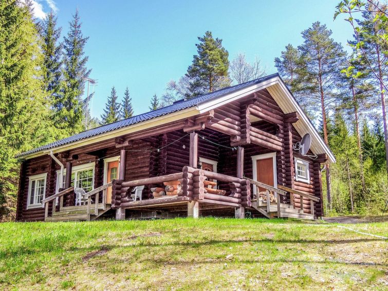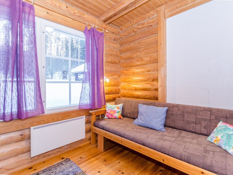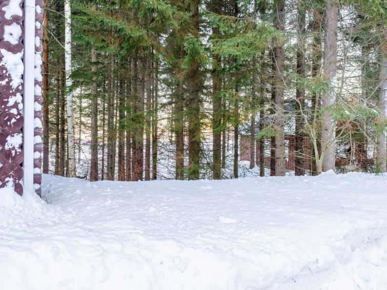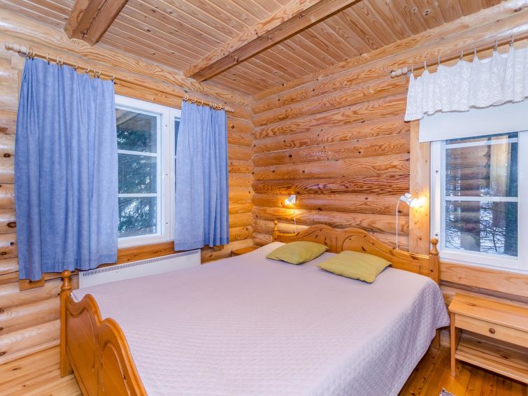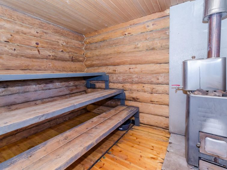 Own, separate lakeside sauna (wood heated stove) with dressing room and electricity. Well-equipped log cottage in peaceful location. Good possibilities for fishing, boat motor to be rent separately. Children friendly shore faces west. Separate smoke sauna to be rent separately 1,5 km. Badminton net and rackets in customers’ disposal. Covered grill. Snowmobile trail 500 m, snowmobile can be rent separately. Baby bed.