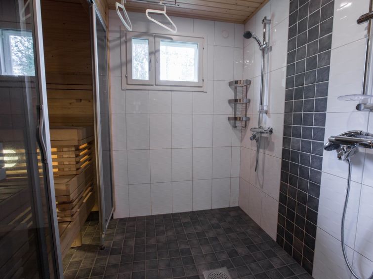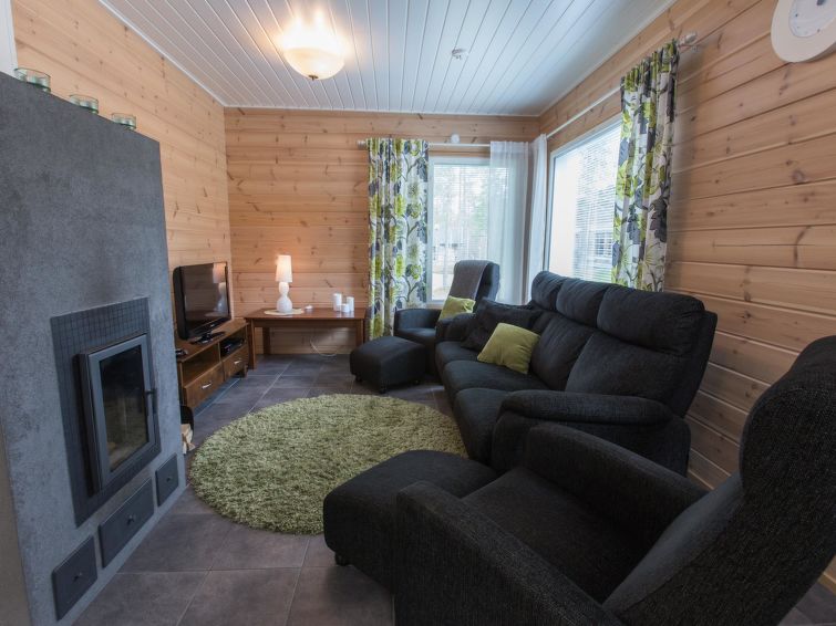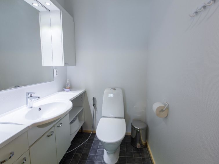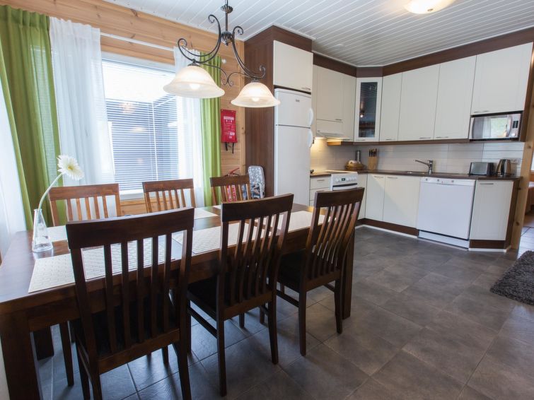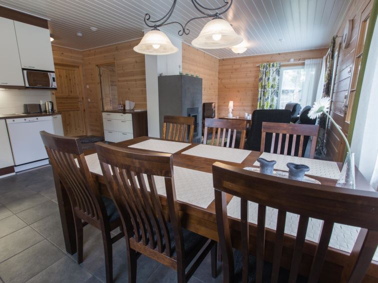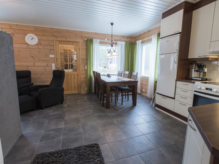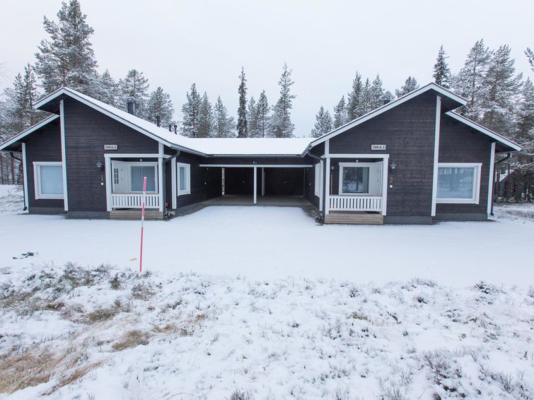 A dublex apartment, built 2011, situated 40 km north of Kolari in Äkäslompolo. Combined living room kitchen, two bedrooms -one with doublebed and other with two seperate beds, there is TV in one bedroom, seperate toilet, utilityroom (second toilet), washing room, sauna. Equipment for children: cot with blanket and pillow, feeding chair, potty, bowl for bathing). Storage for wood and equipment. A dublex apartment situated in peaceful area in Peltotieva, Äkäslompolo. All villages services and ski tracks are near. Cosy and well-equipped apartment suitable for family with children. Car shelters between apartments. Final cleaning is included in prices, linen available on order. No pets allowed.