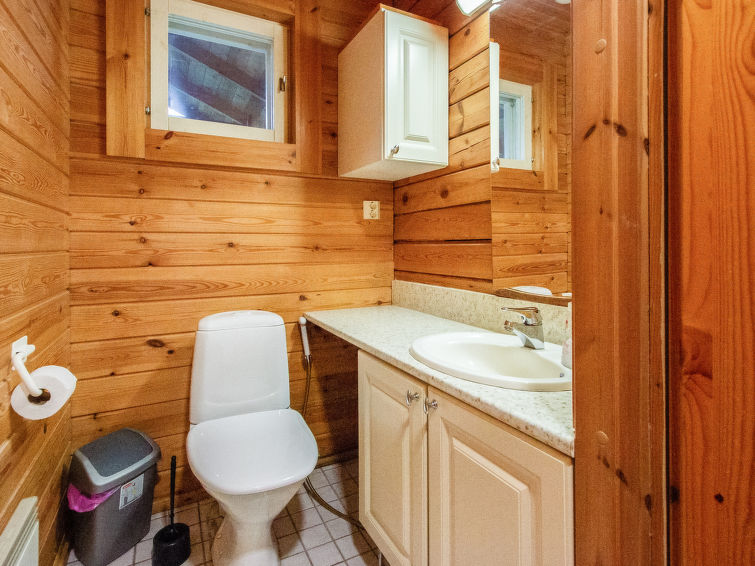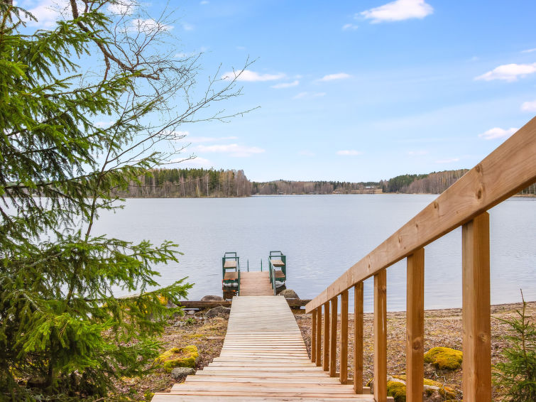 Log cottage 2001, living room/kitchen convertible sofa, bedroom double bed, second bedroom 2 beds, dressing room, washroom, sauna, open porch. Cottage on level grassed plot with broadleaf trees. Hauho old village and church 15 km, Aulanko 40 km, horse riding centre 9 km. From cottage nature trails of varying distances. Owner rents out electric outboard motor. Obligatory deposit 50 € payable only on the spot in cash.